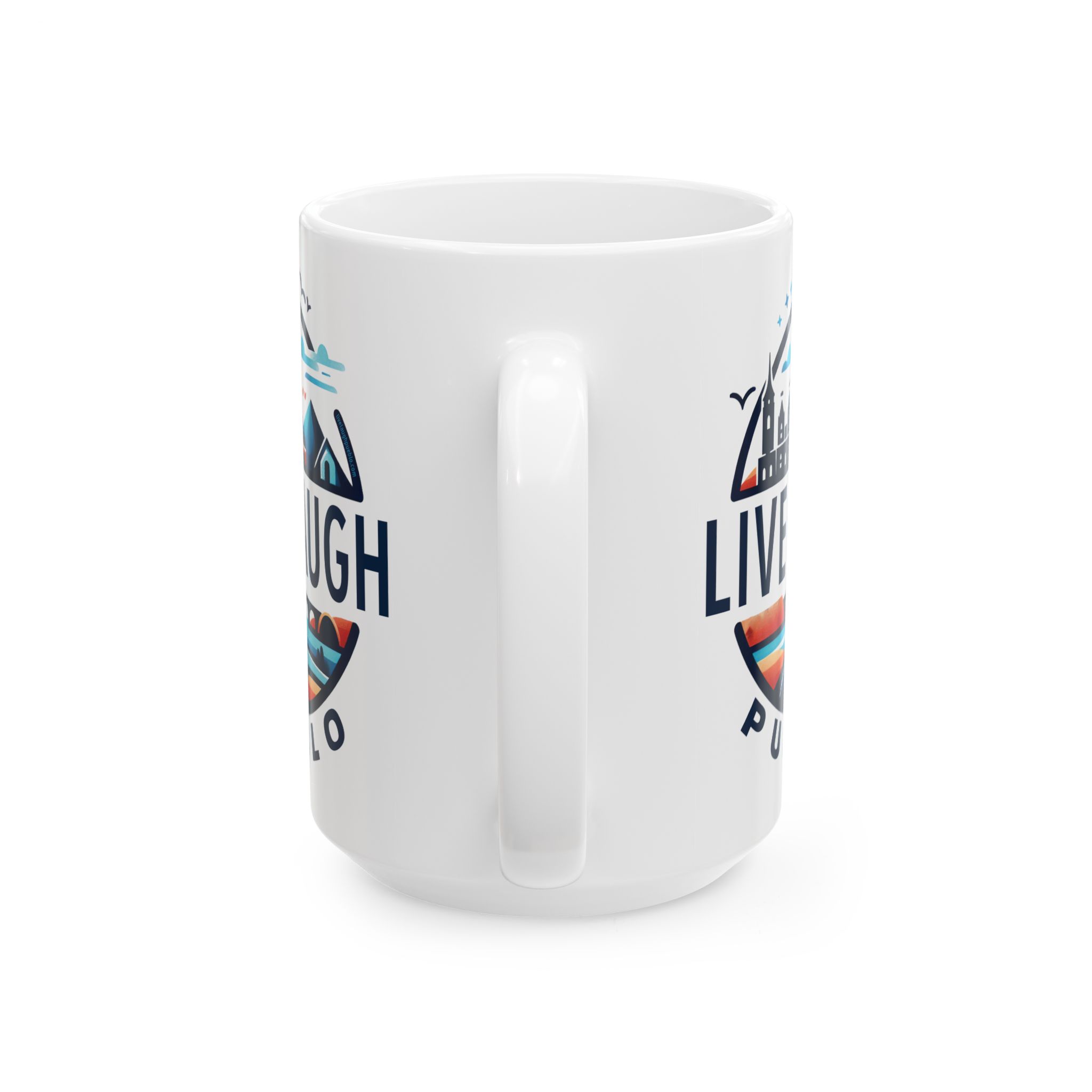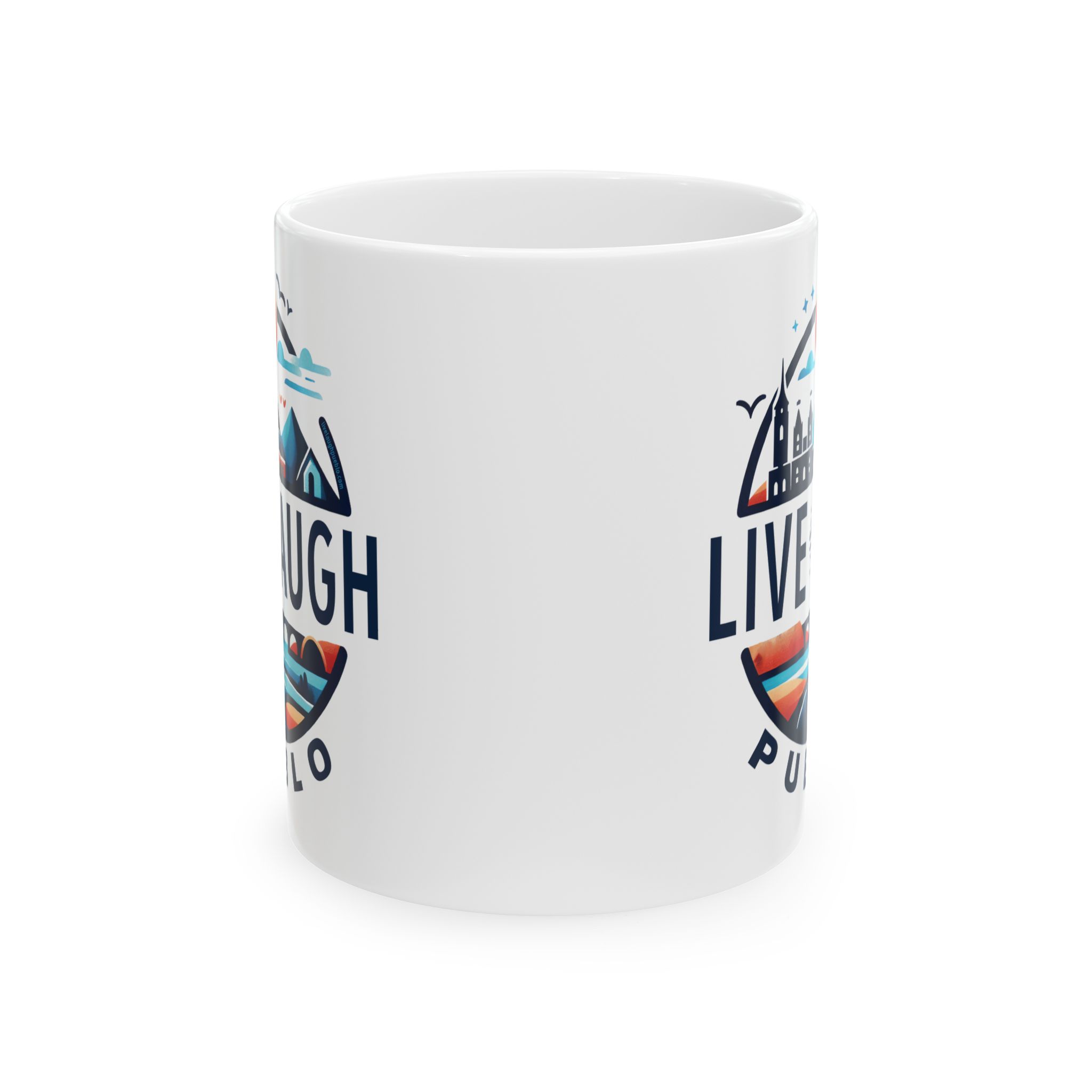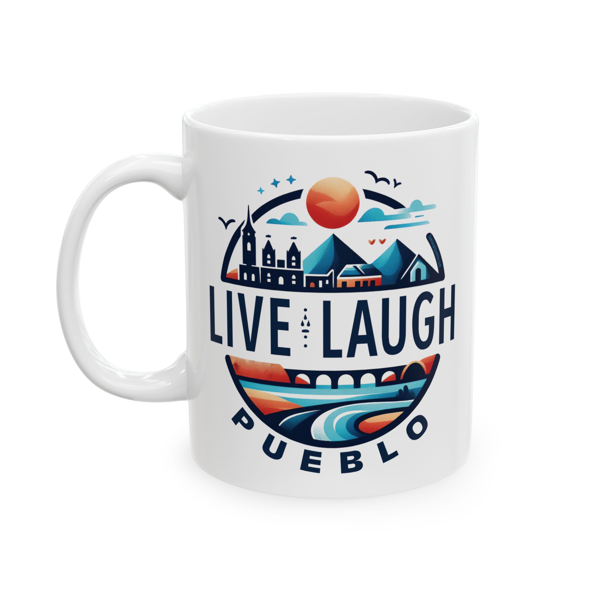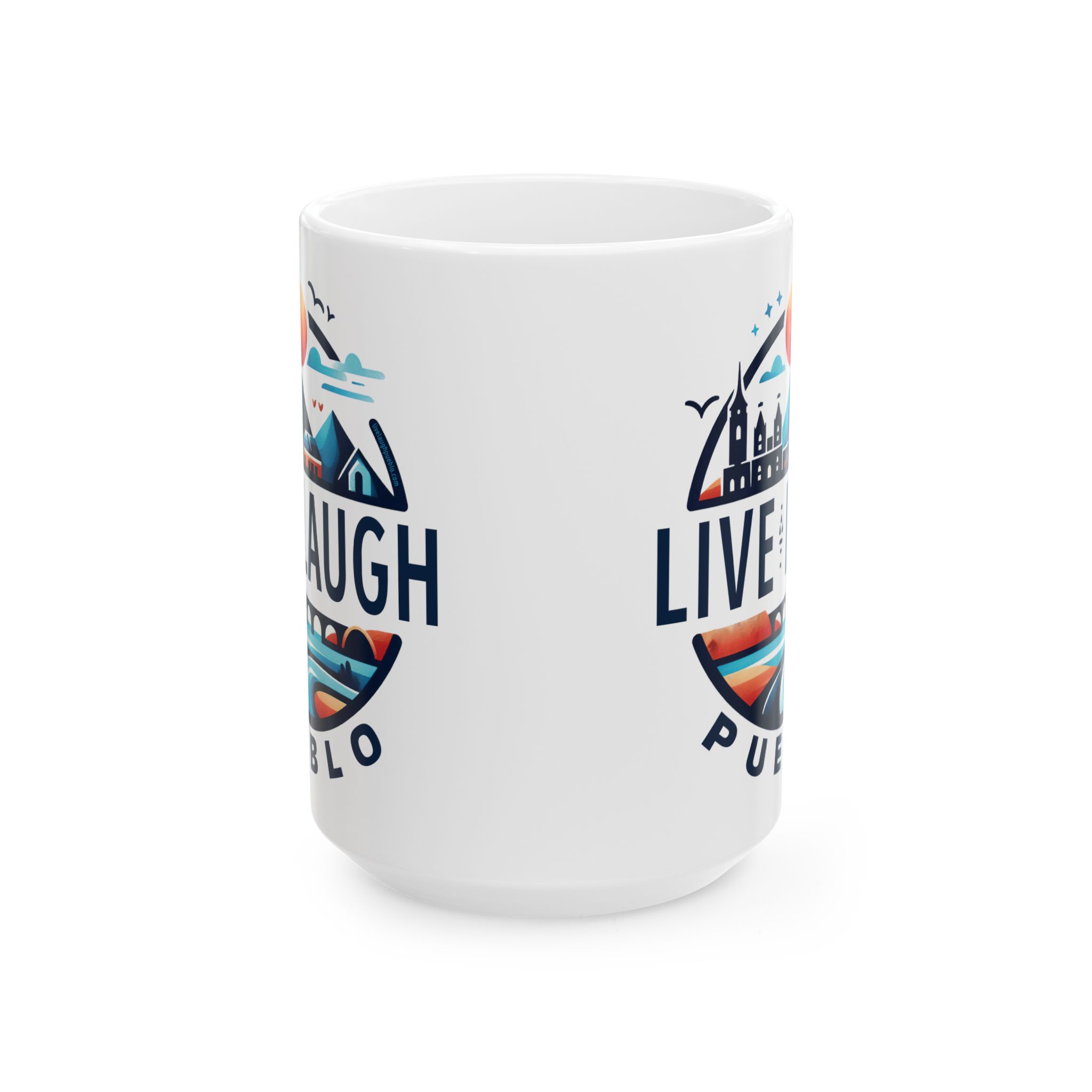 Sip your favorite beverage and embrace the spirit of Pueblo with our charming ‘Live Laugh Pueblo’ ceramic mug. Available in 11oz and 15oz sizes, this eye-catching mug features a vibrant, modern design that captures the essence of this beautiful Colorado city.