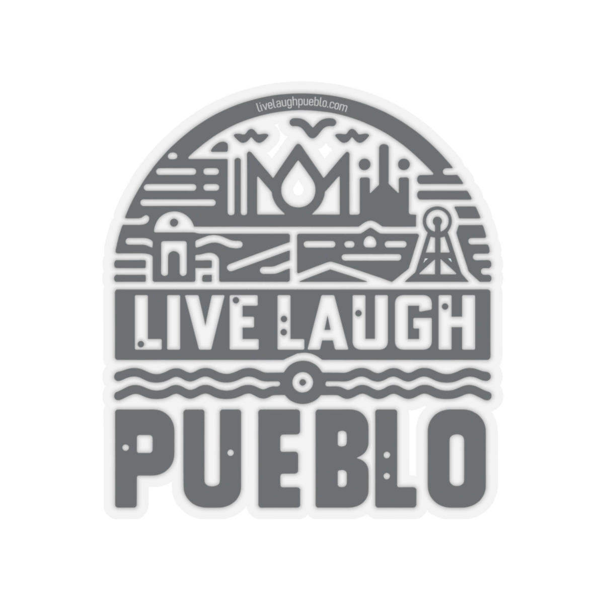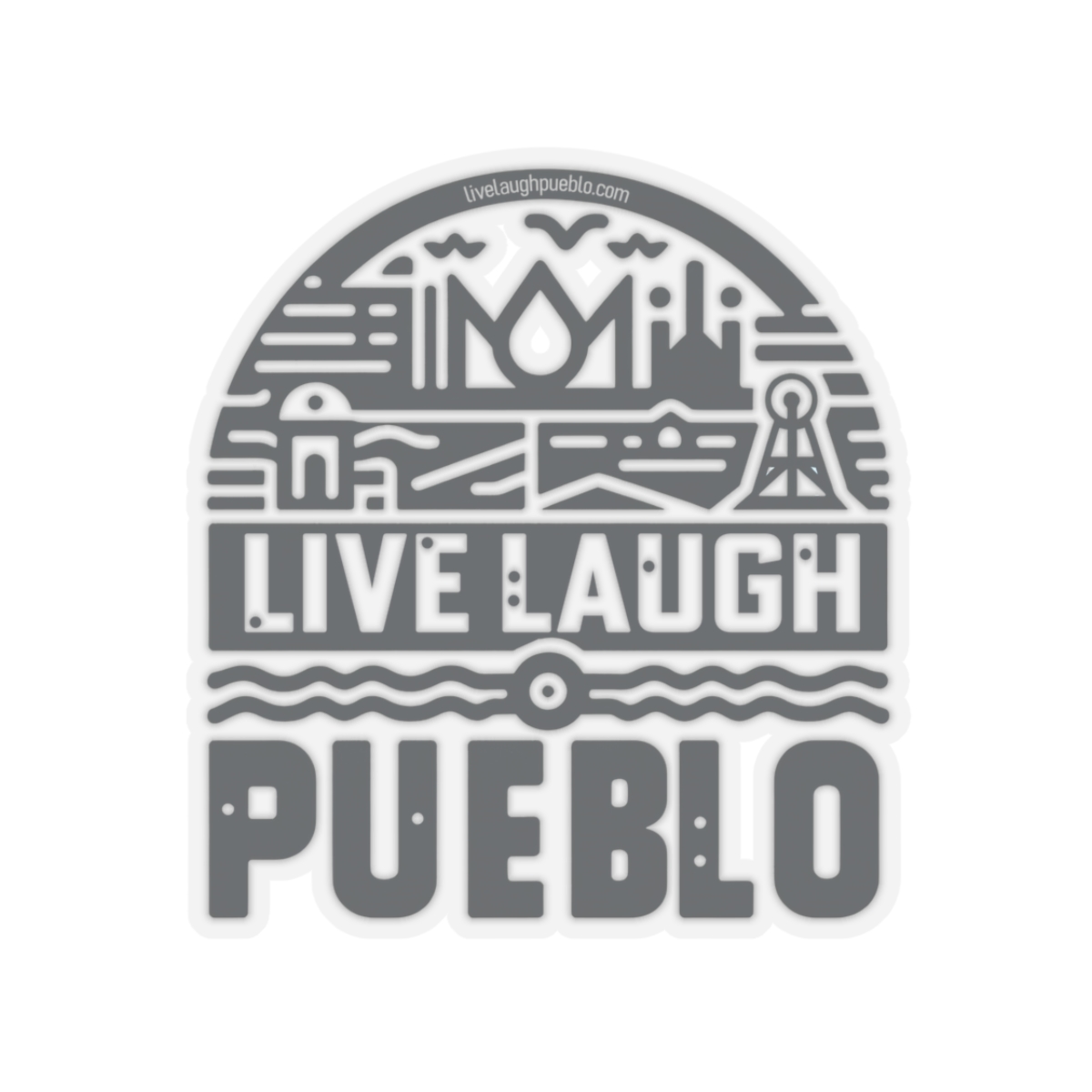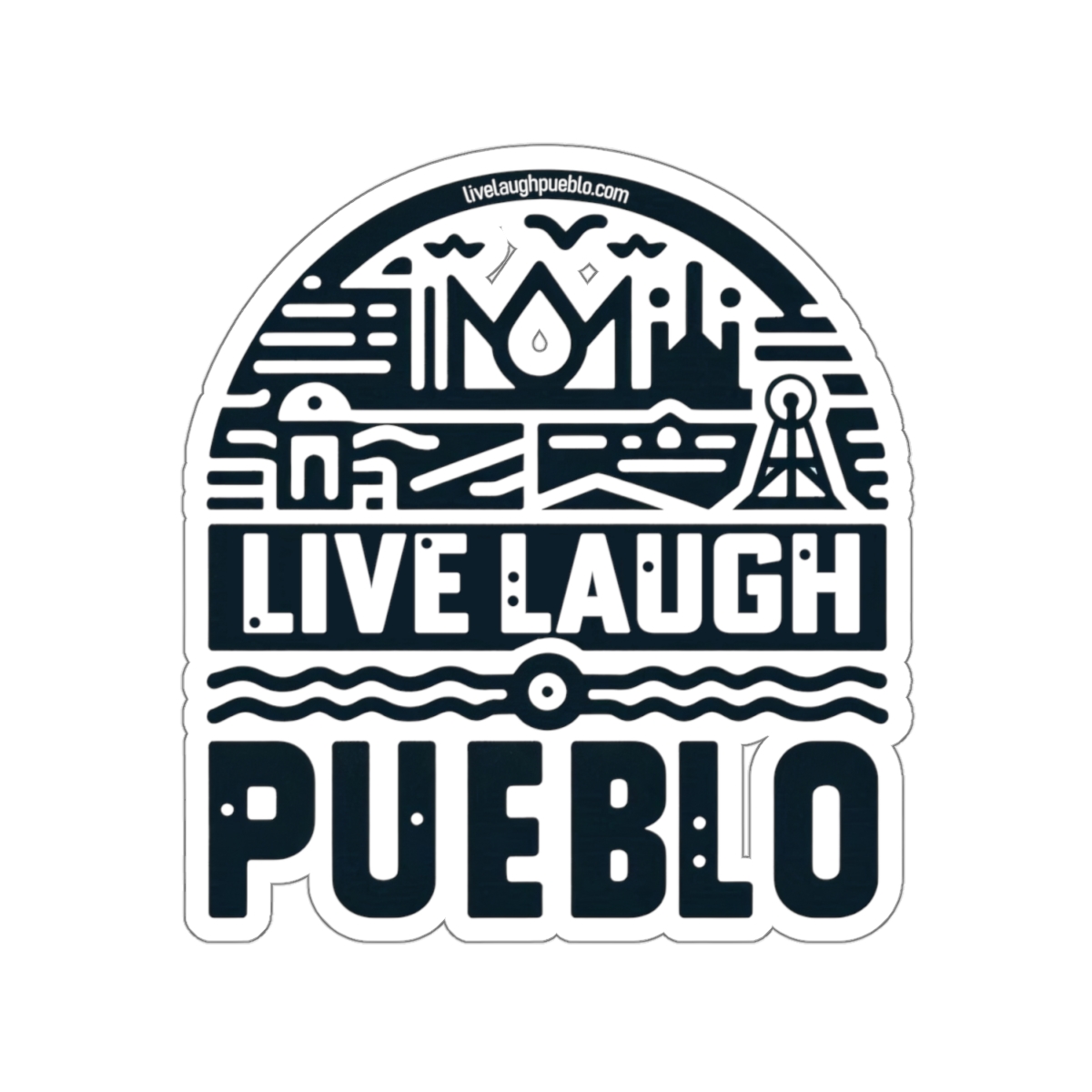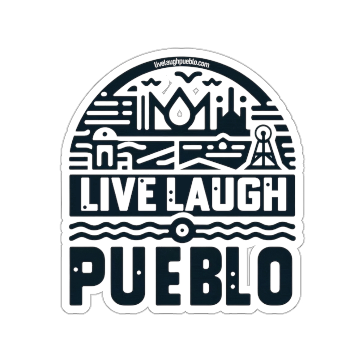 Live, Laugh, Pueblo! Blue Southern Colorado Industrial Block Print Kiss-Cut Stickers