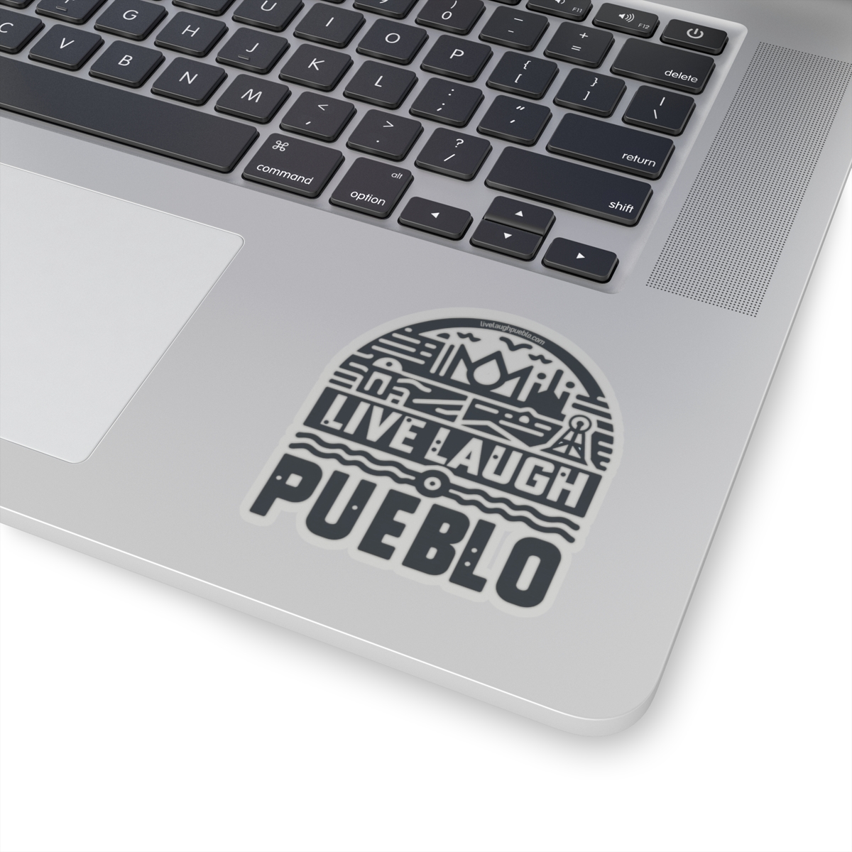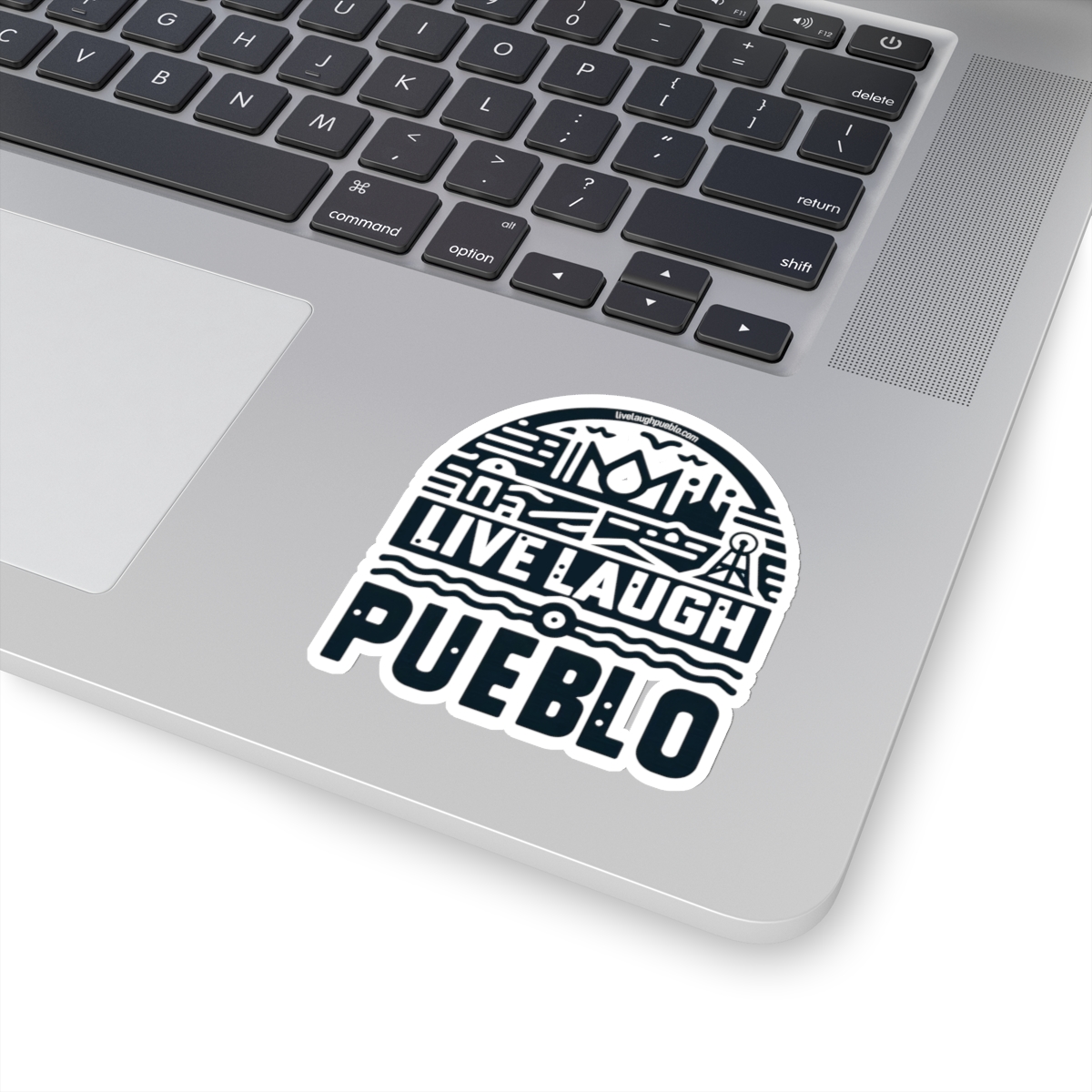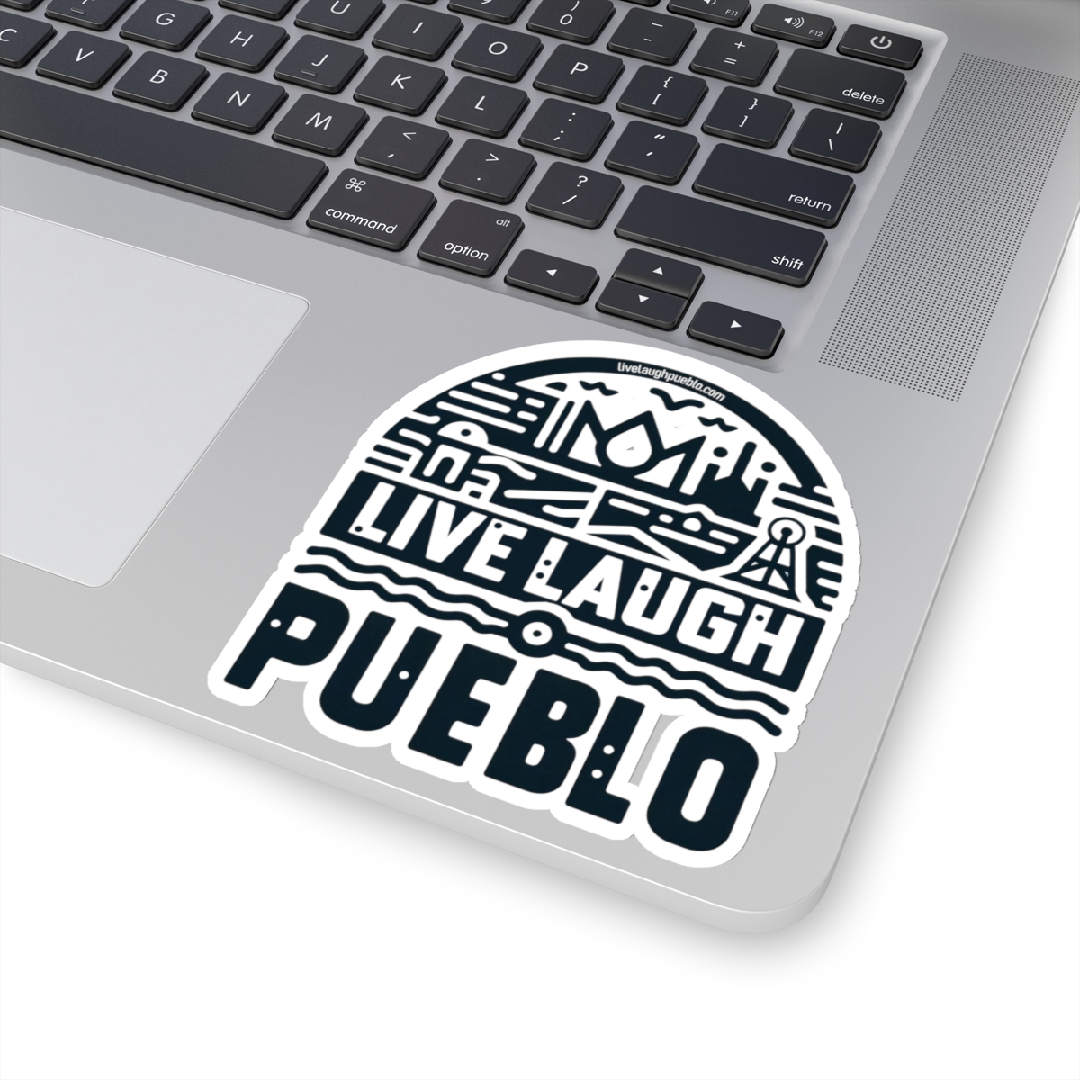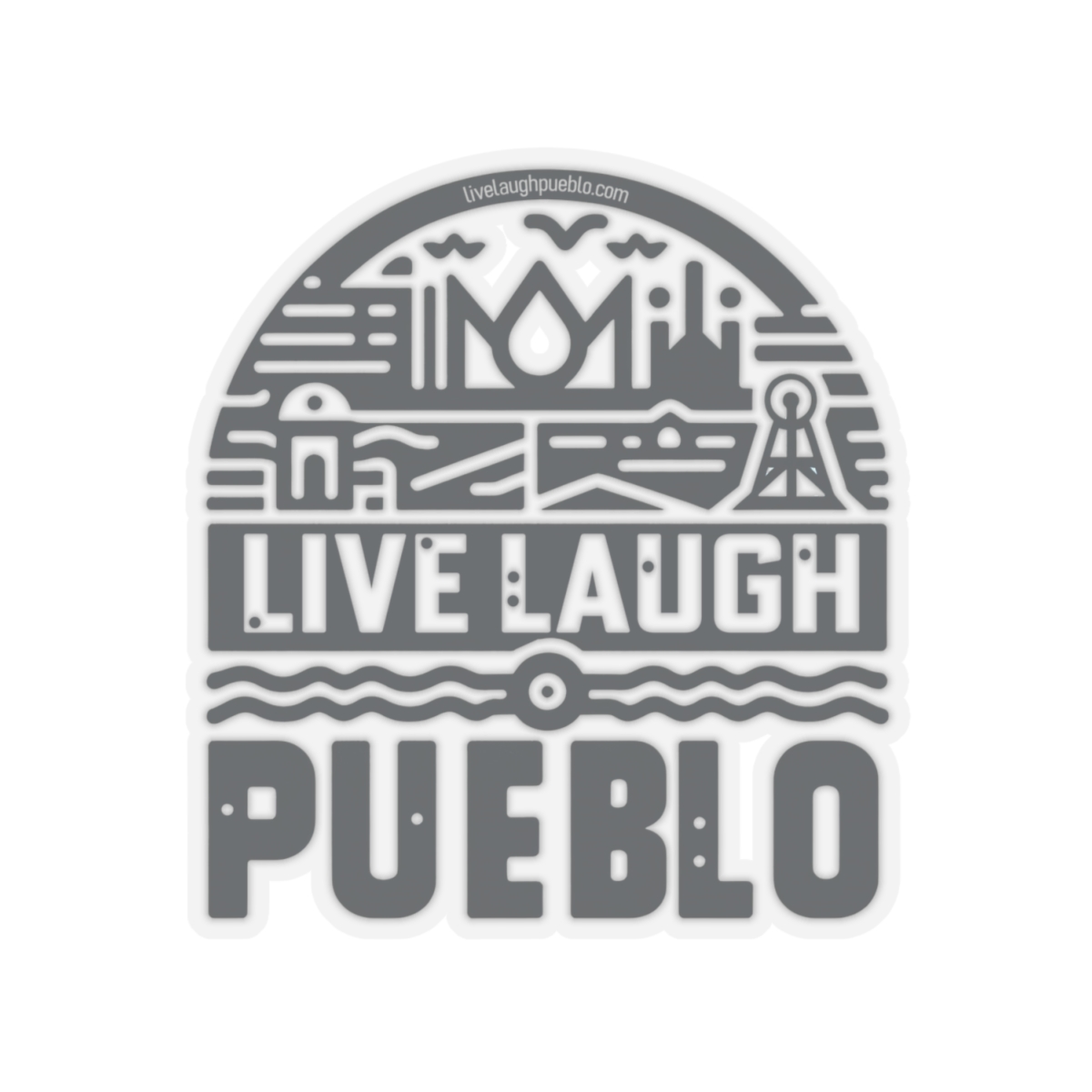 Live, Laugh, Pueblo! Blue Southern Colorado Industrial Block Print Kiss-Cut Stickers