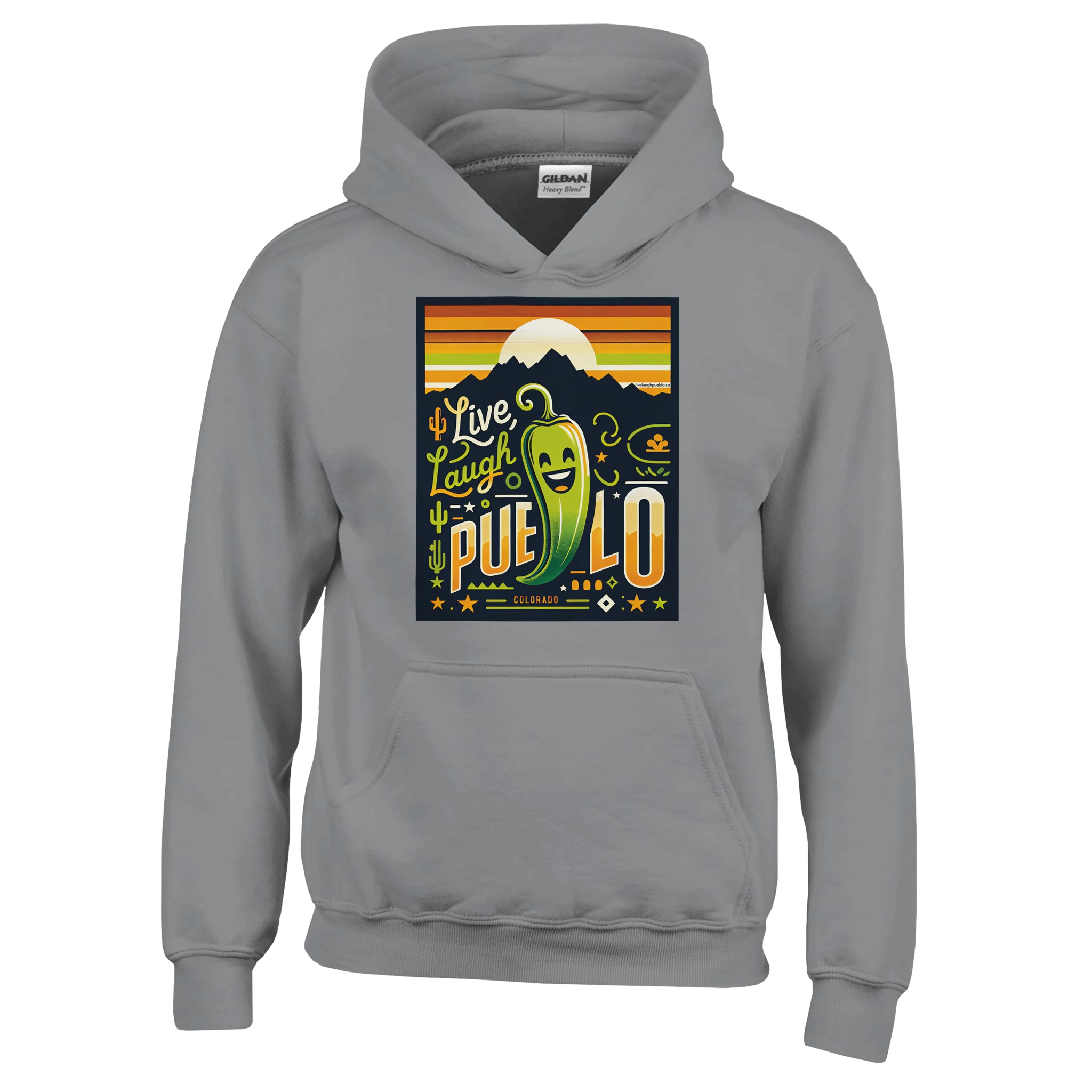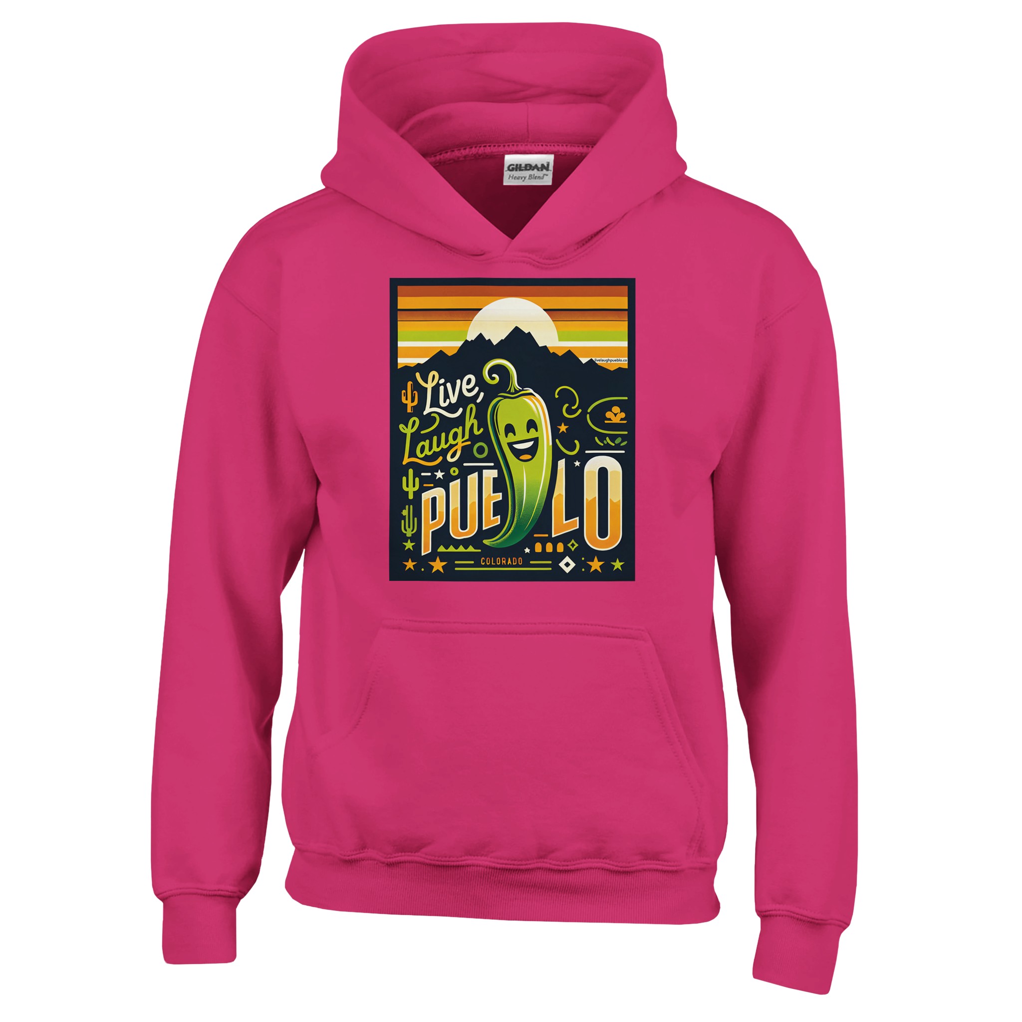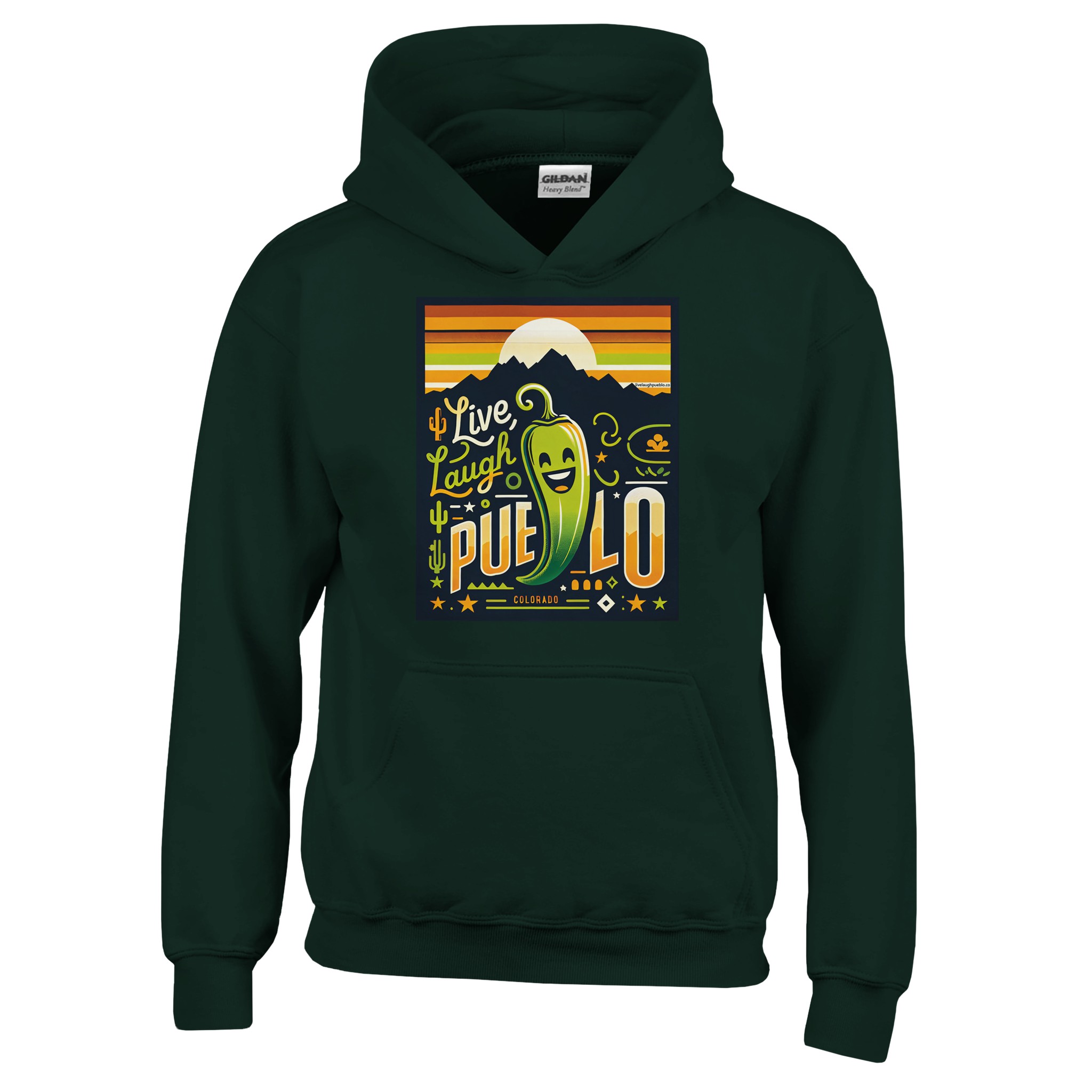 Whether your child is a Colorado native, a Pueblo enthusiast, or simply loves fun and vibrant clothing, this “Live Laugh Pueblo” hoodie is sure to become a favorite in their wardrobe. It’s more than just a piece of clothing ā it’s a celebration of life, laughter, and the spicy spirit of Pueblo, Colorado, complete with its iconic green chile pepper.