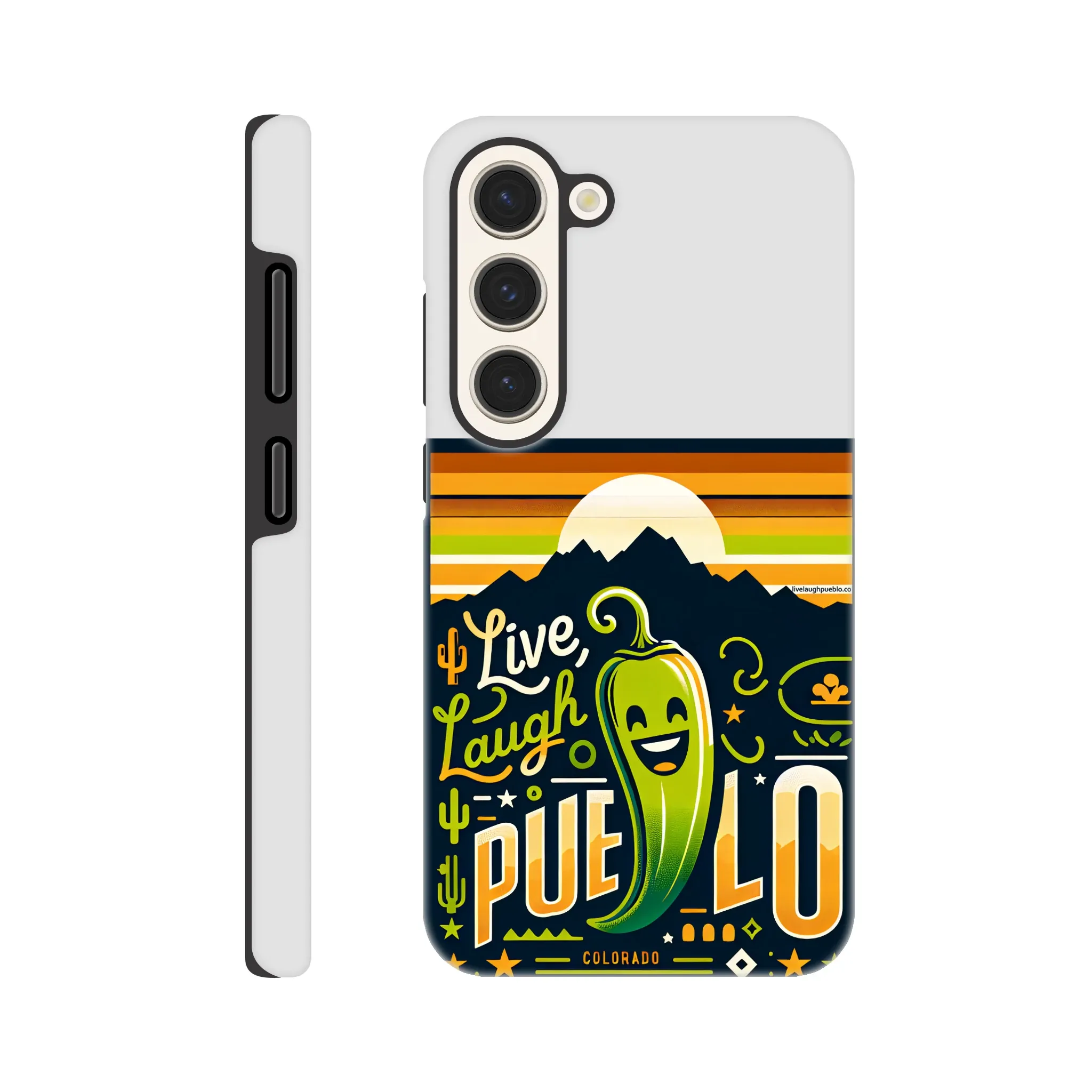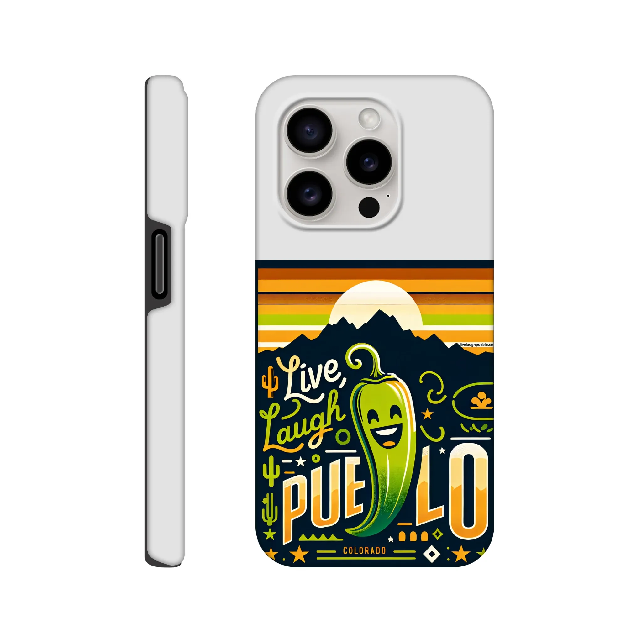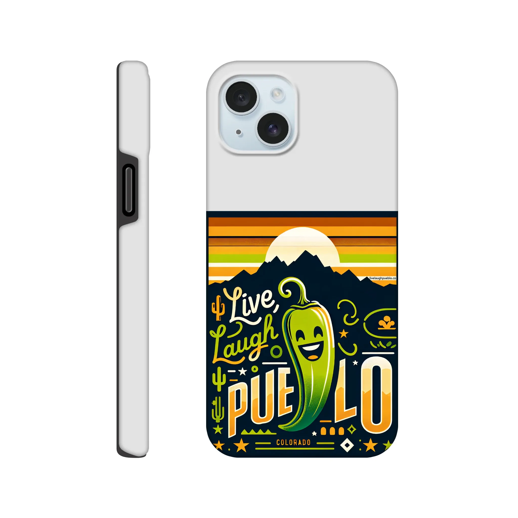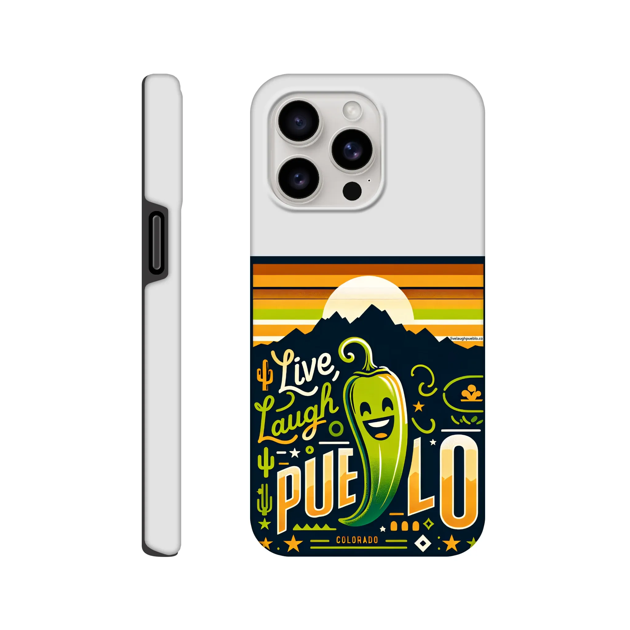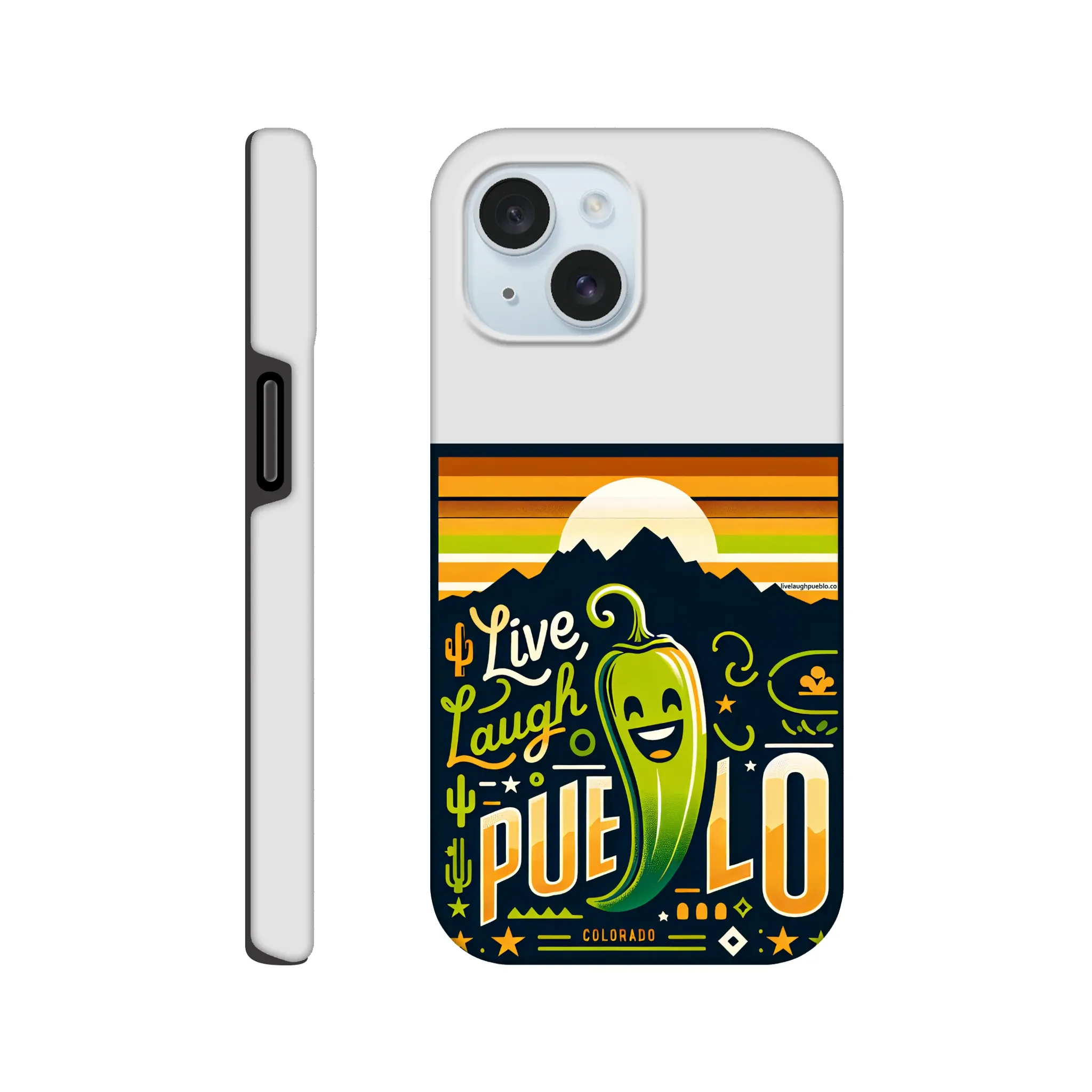 Spice up your phone’s protection with our “Live, Laugh, Pueblo!” Colorado-inspired Tough Phone Case. This case doesn’t just shield your device; it celebrates the vibrant spirit of Pueblo with its charming chile pepper design.
