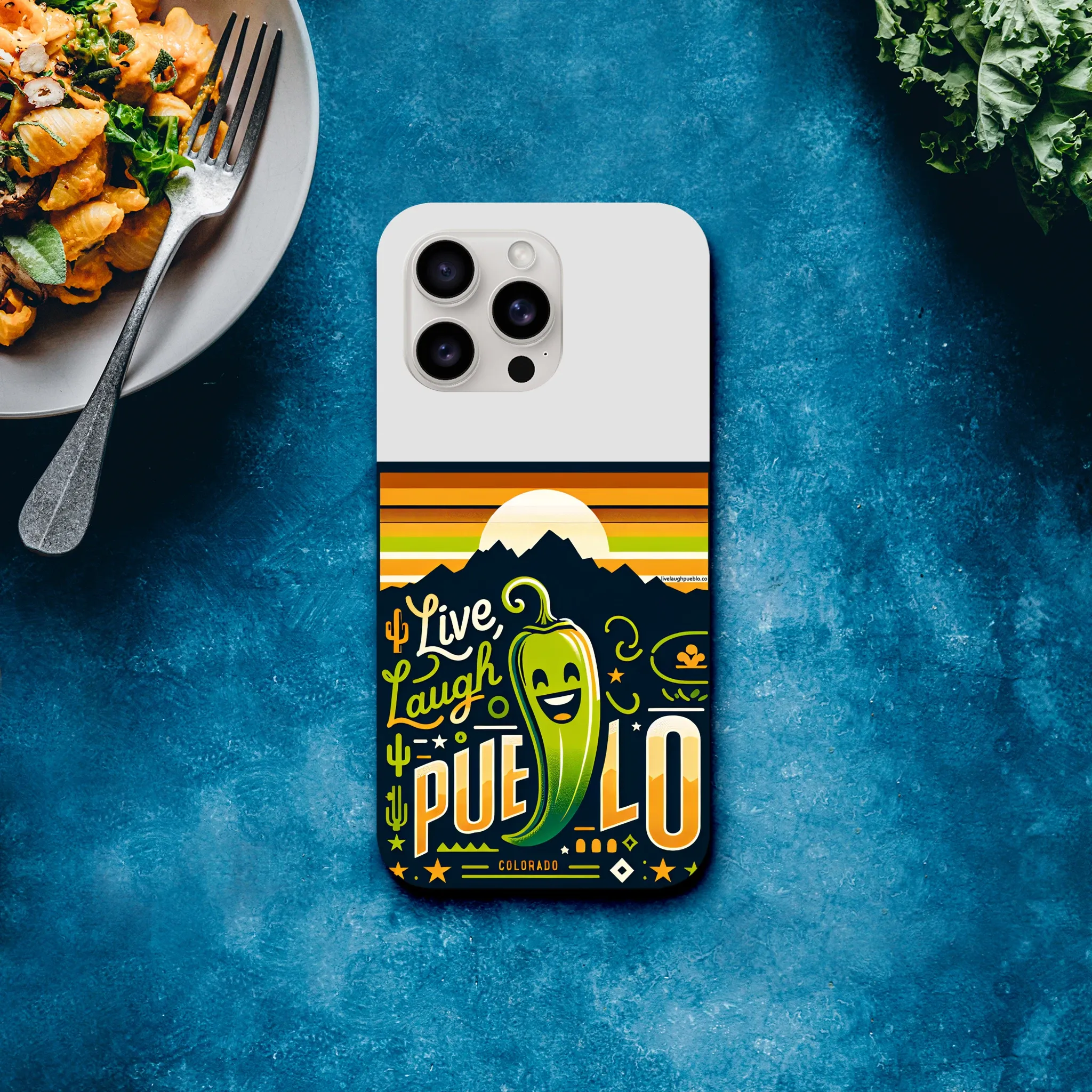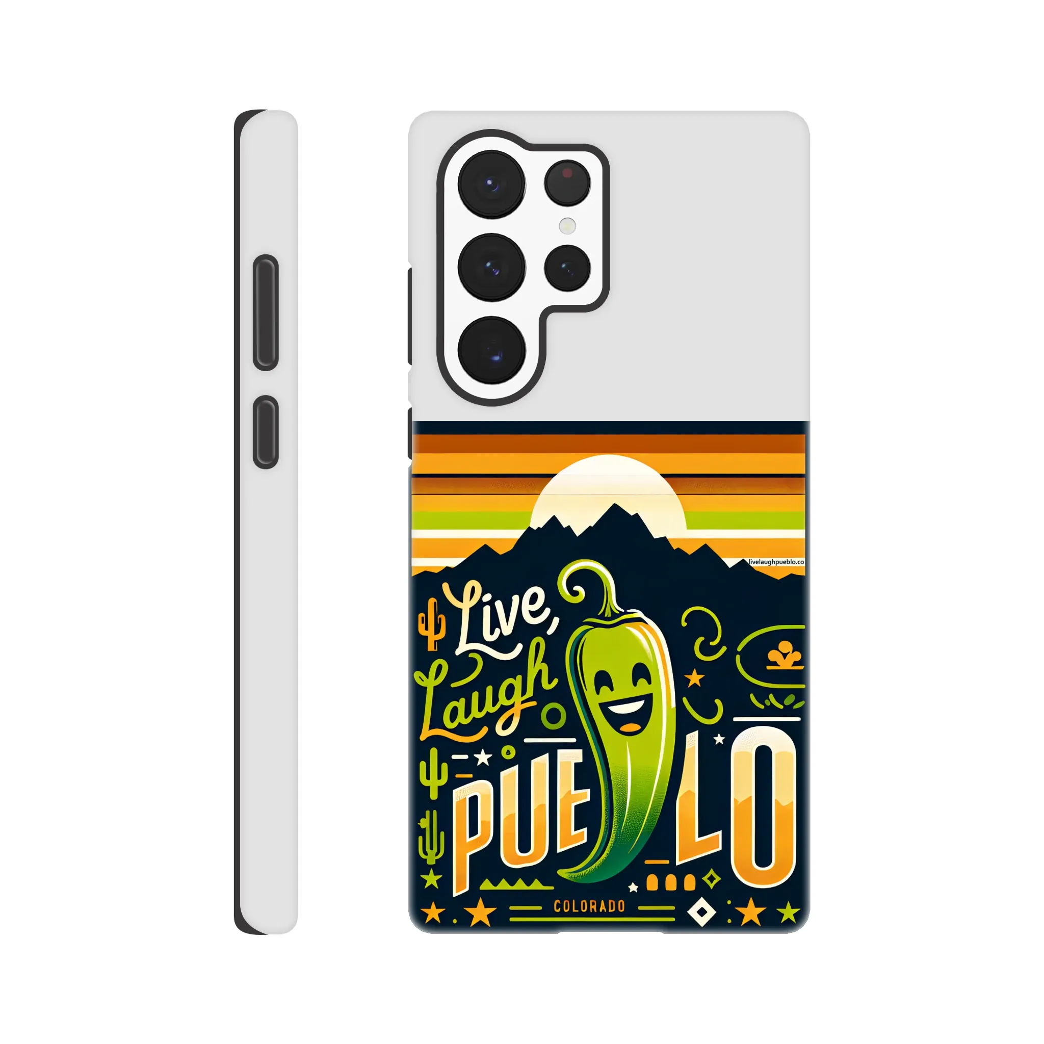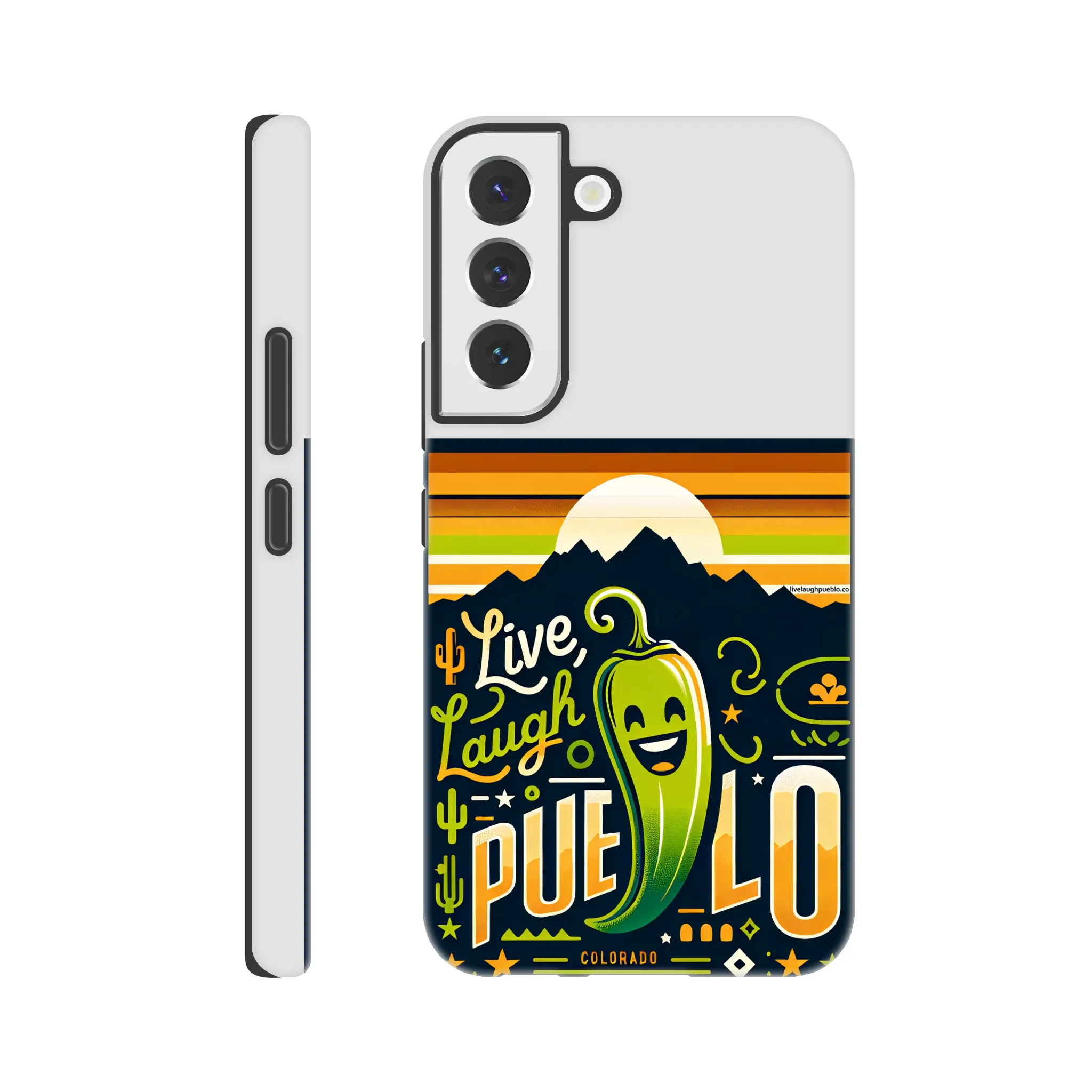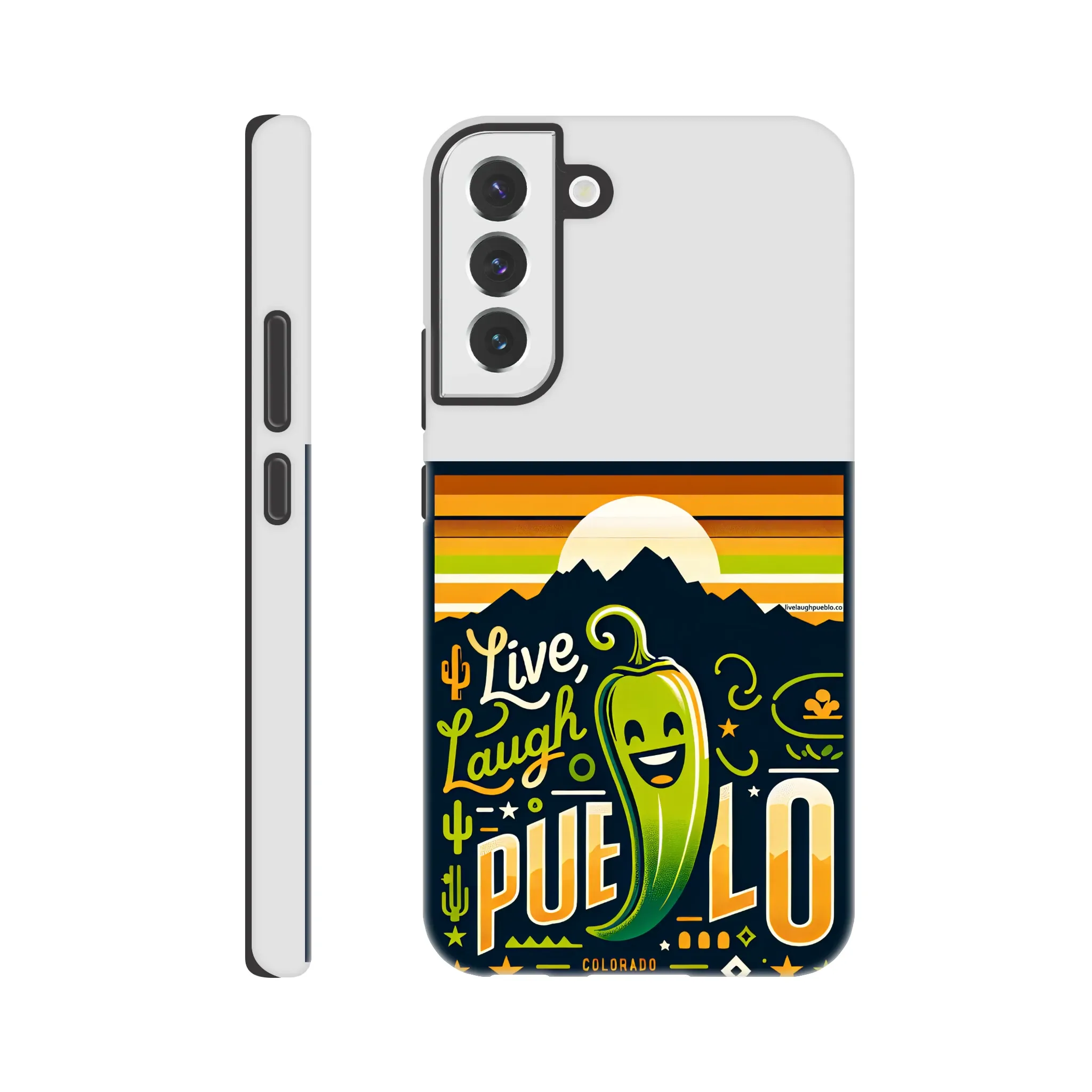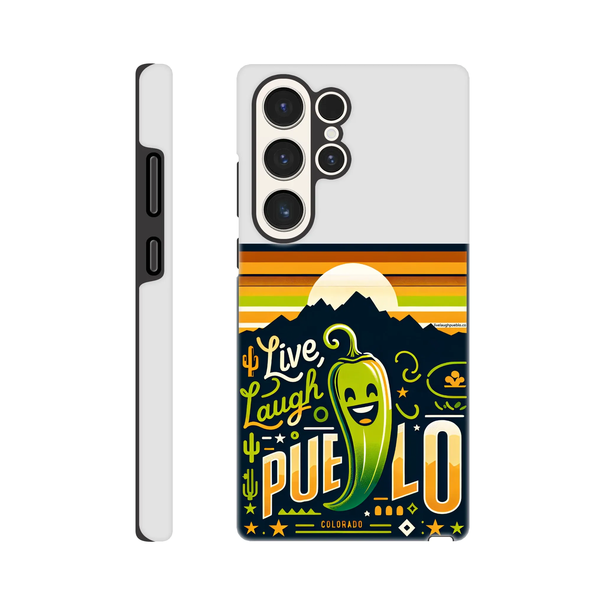 Spice up your phone’s protection with our “Live, Laugh, Pueblo!” Colorado-inspired Tough Phone Case. This case doesn’t just shield your device; it celebrates the vibrant spirit of Pueblo with its charming chile pepper design.