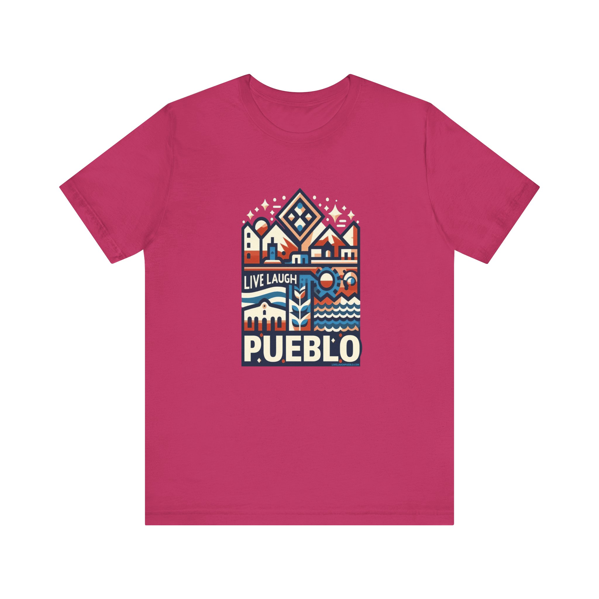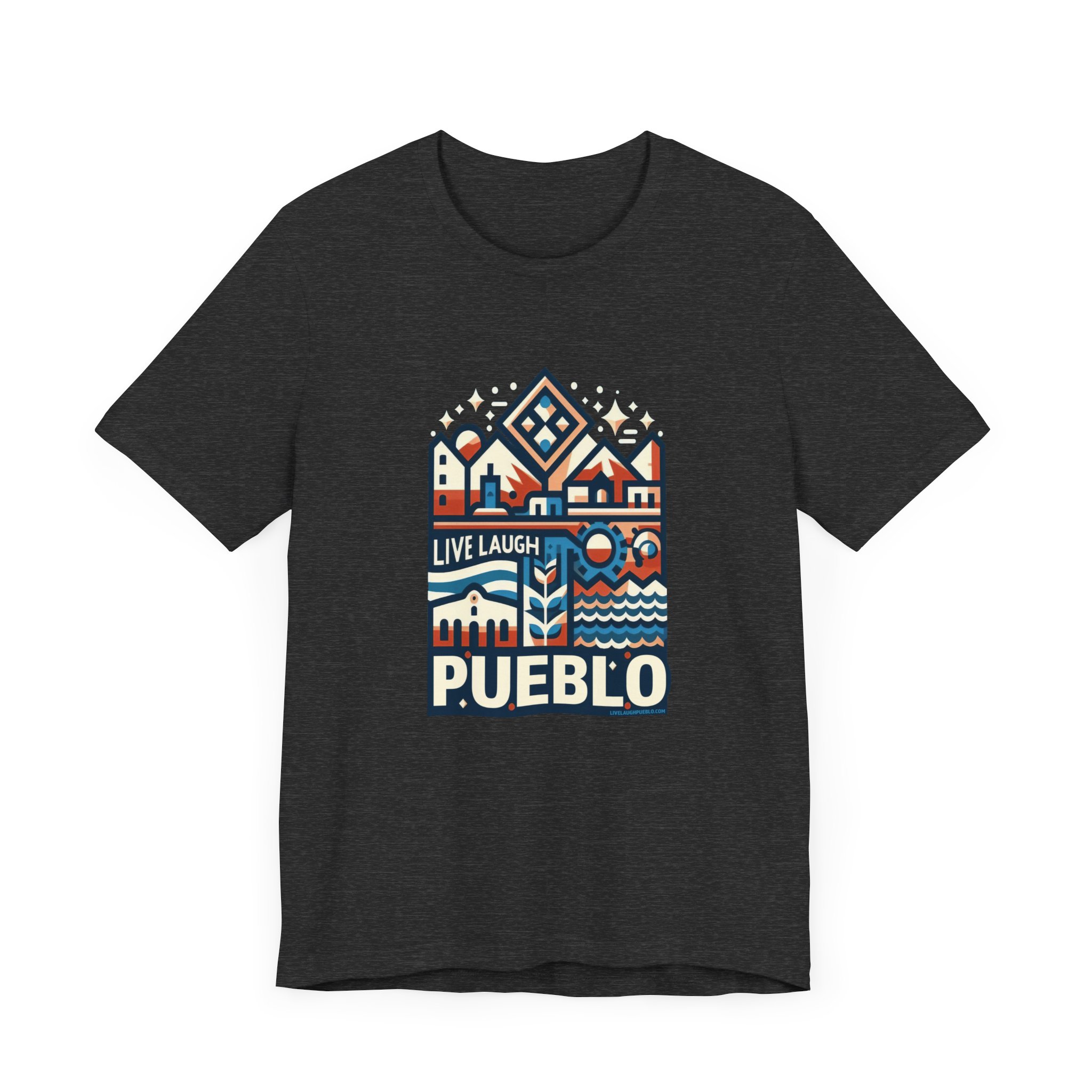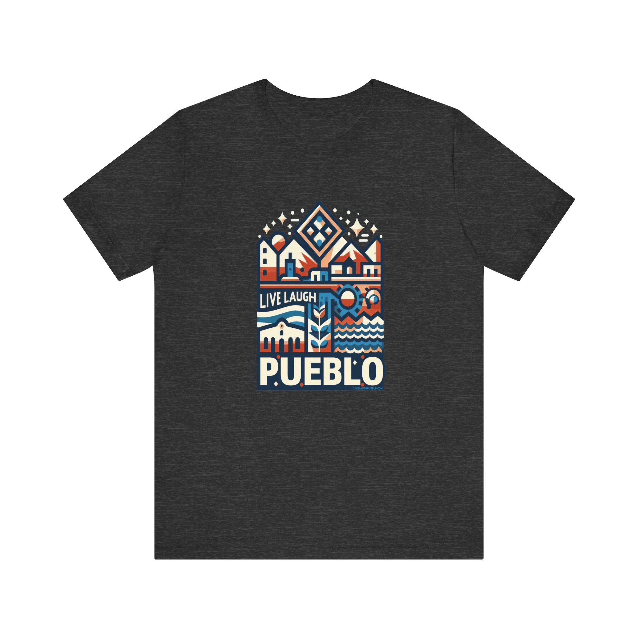 Celebrate the vibrant essence of Pueblo, Colorado, with our “Live, Laugh, Pueblo! Colorful Regional Collage Unisex Jersey Short Sleeve Tee.” This dynamic tee features a beautifully crafted collage that showcases the rich culture, stunning landscapes, and icons of Pueblo. The bold colors and intricate design make it a standout piece in any wardrobe. Made from high-quality, soft jersey fabric, this unisex short sleeve tee offers both comfort and durability for everyday wear. Whether you’re exploring the city, enjoying outdoor activities, or relaxing at home, this tee is a stylish way to show your Pueblo spirit.