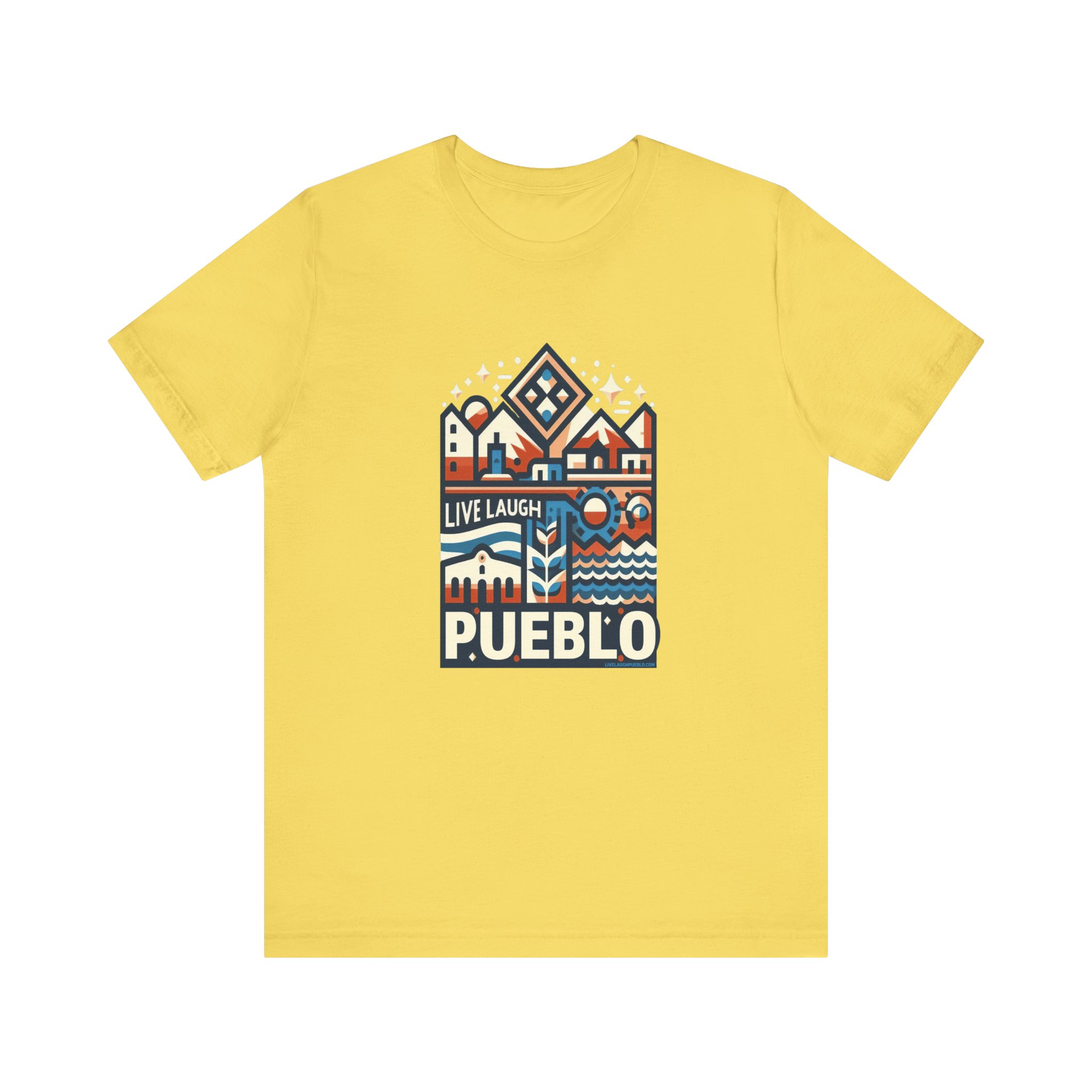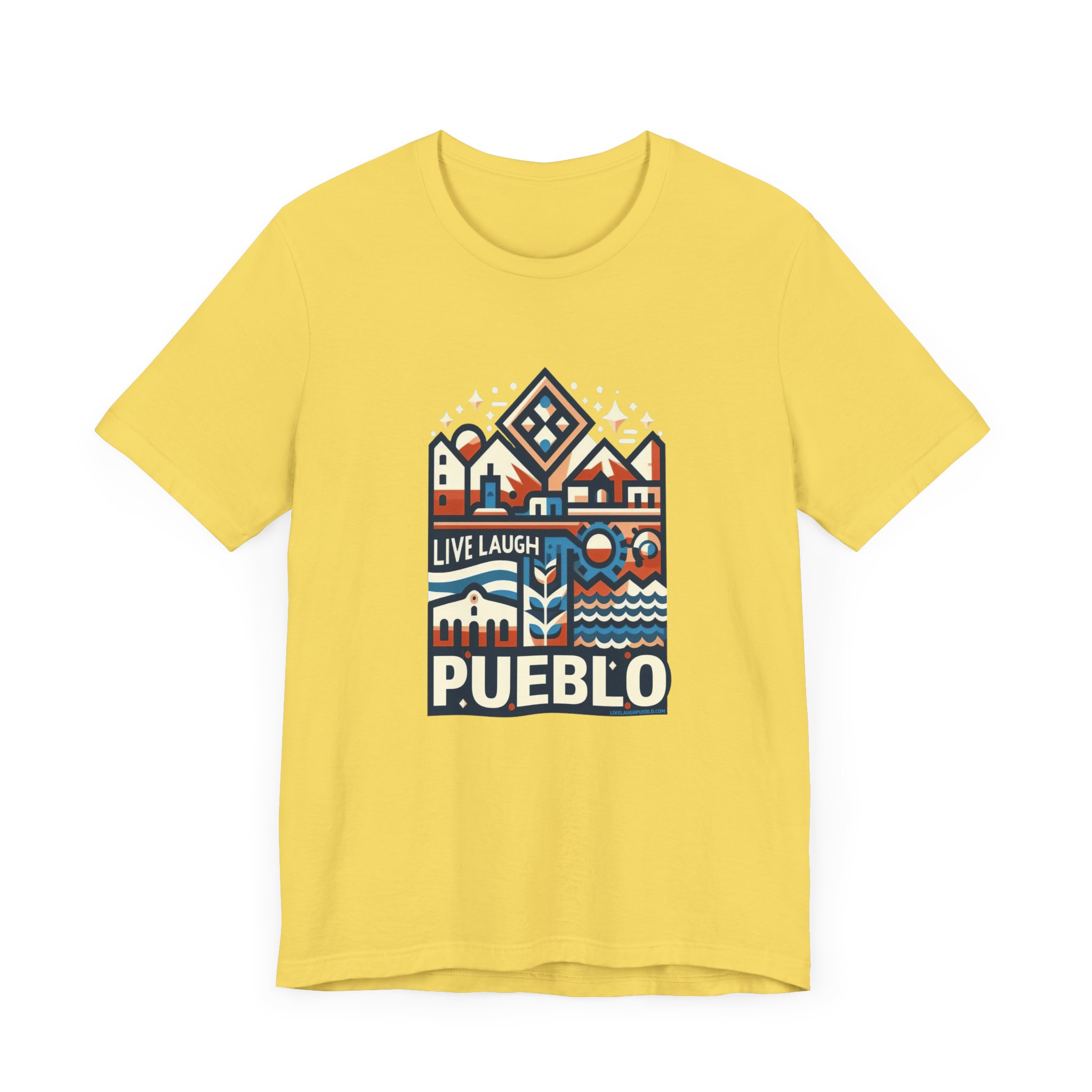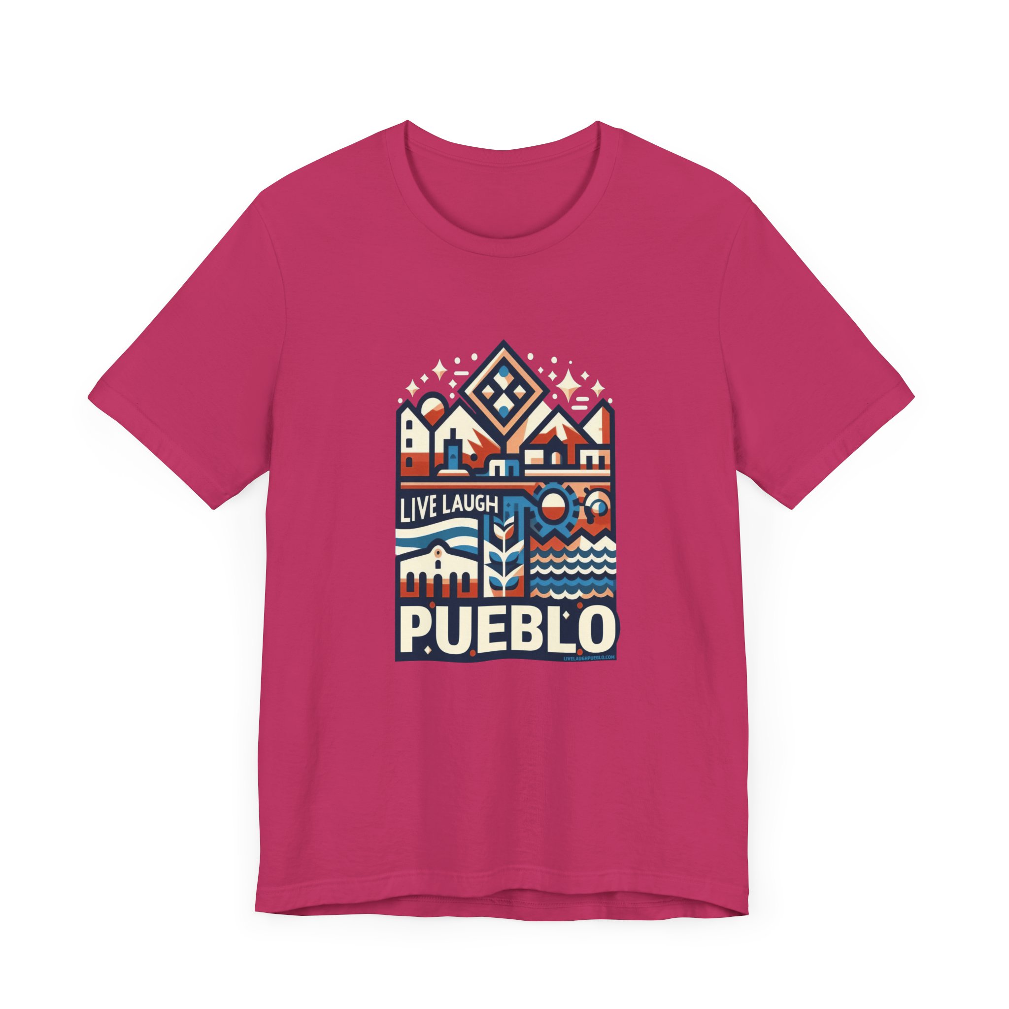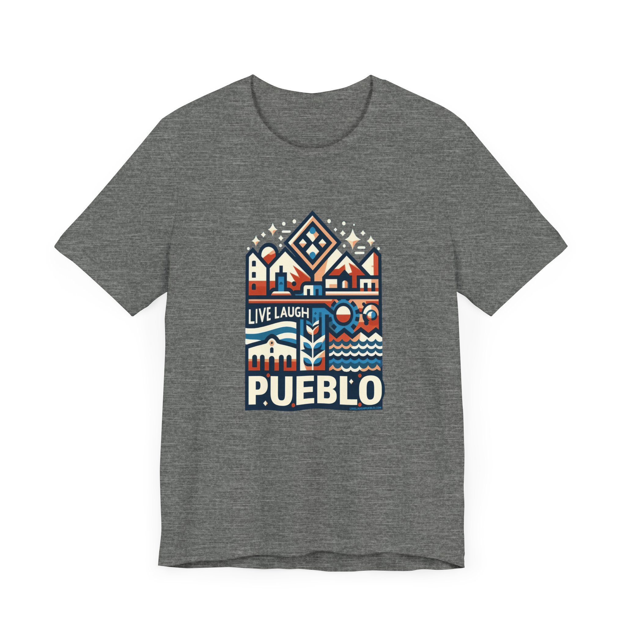 Celebrate the vibrant essence of Pueblo, Colorado, with our “Live, Laugh, Pueblo! Colorful Regional Collage Unisex Jersey Short Sleeve Tee.” This dynamic tee features a beautifully crafted collage that showcases the rich culture, stunning landscapes, and icons of Pueblo. The bold colors and intricate design make it a standout piece in any wardrobe. Made from high-quality, soft jersey fabric, this unisex short sleeve tee offers both comfort and durability for everyday wear. Whether you’re exploring the city, enjoying outdoor activities, or relaxing at home, this tee is a stylish way to show your Pueblo spirit.
