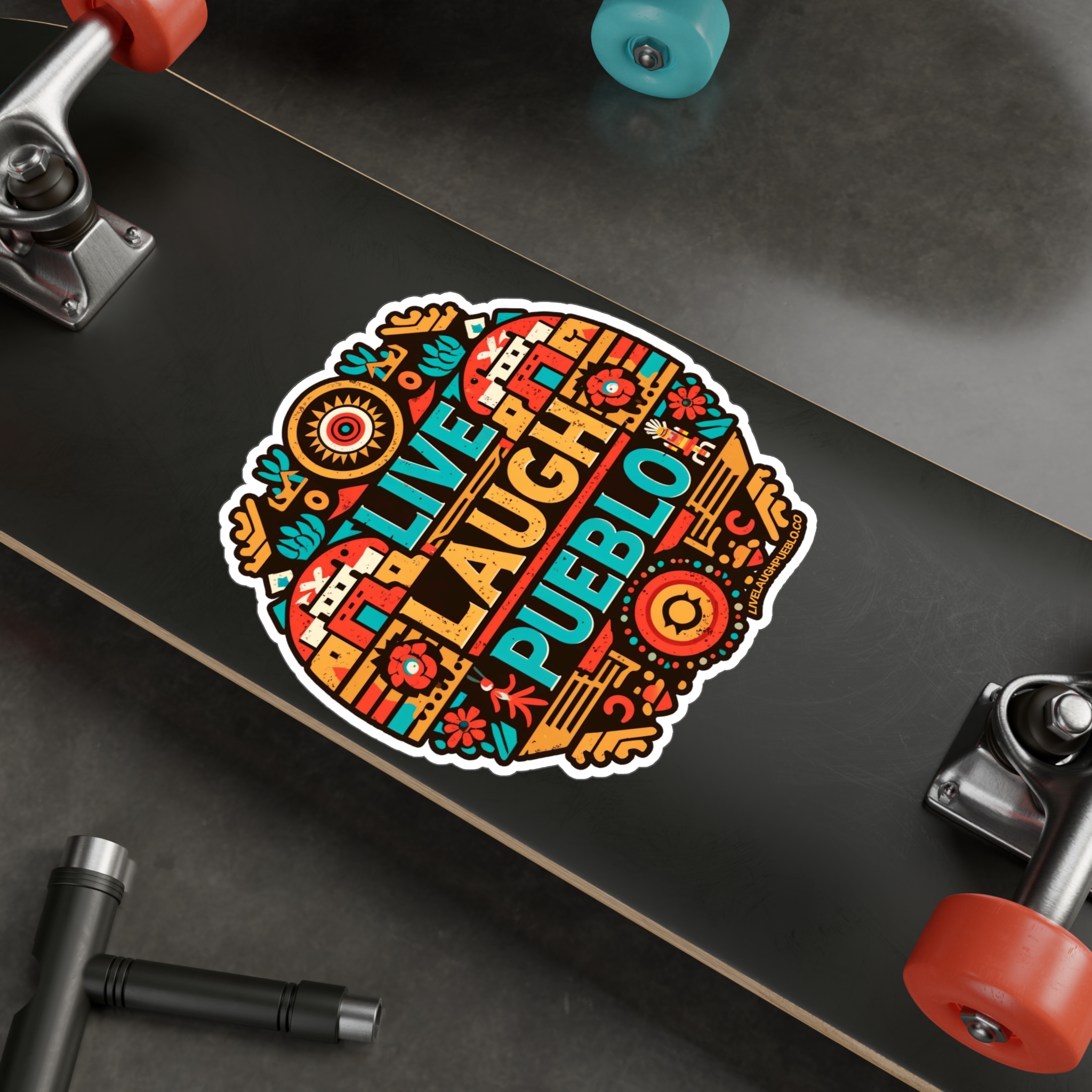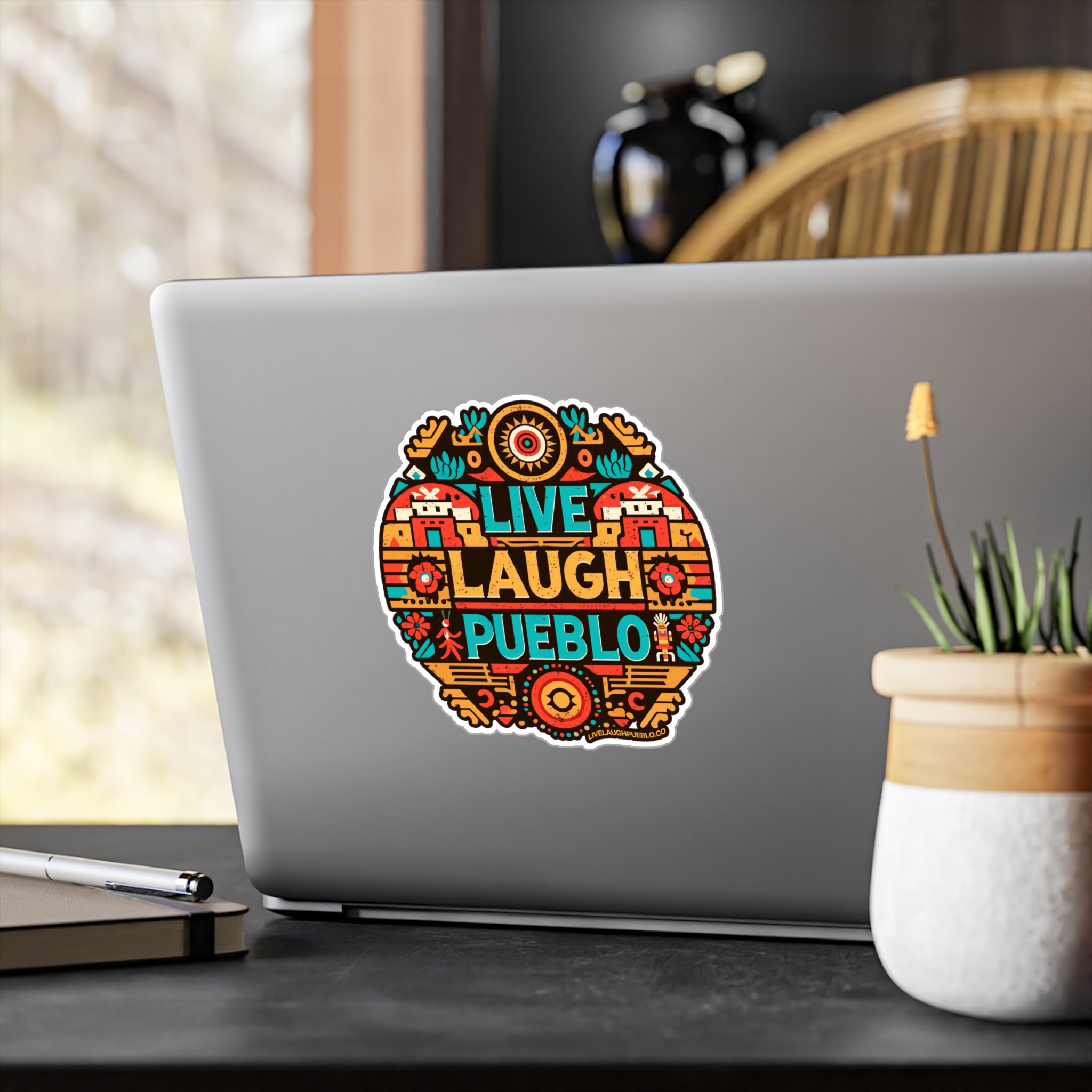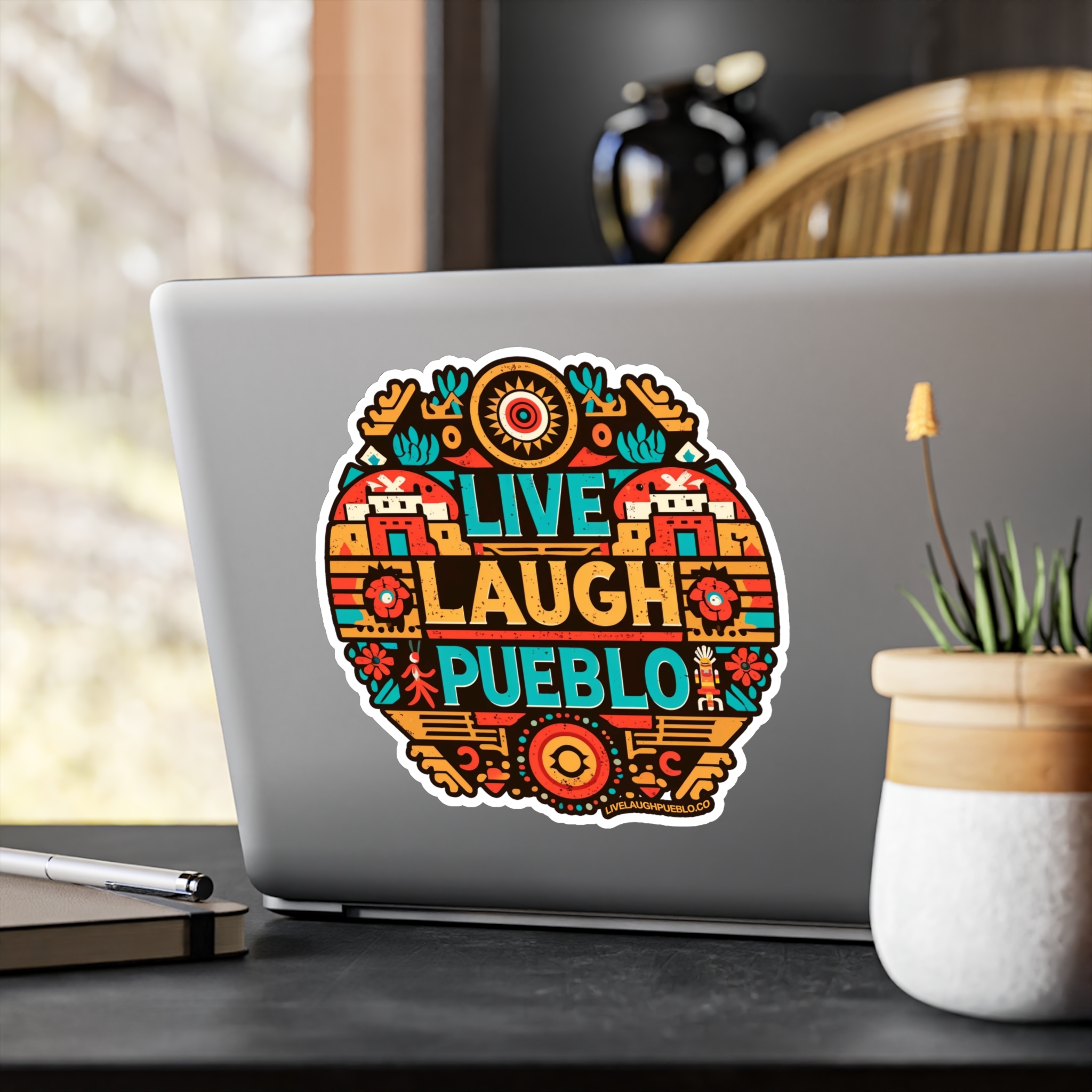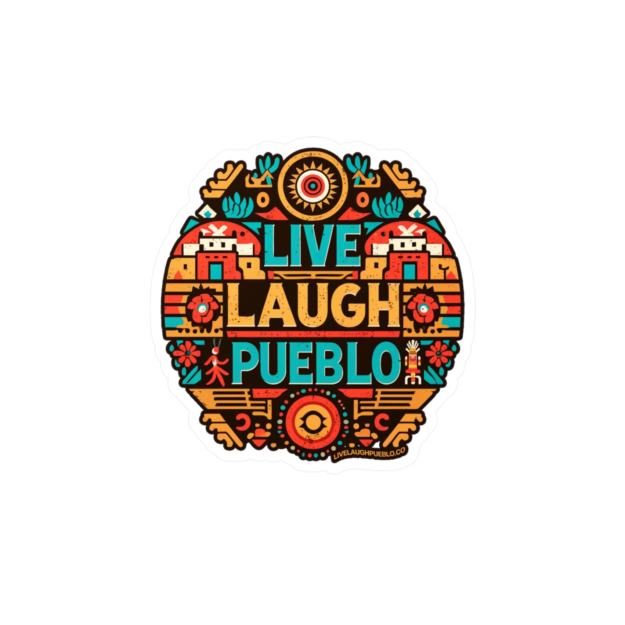 Whether you’re a Southwest enthusiast, a lover of folk art, or simply looking to add a pop of color to your belongings, these ‘Live, Laugh, Pueblo!’ decals are the perfect way to express your style. The intricate design and high-quality materials ensure that your decal will stand out and stand the test of time. Choose your size and bring a piece of Pueblo-inspired art into your daily life today!