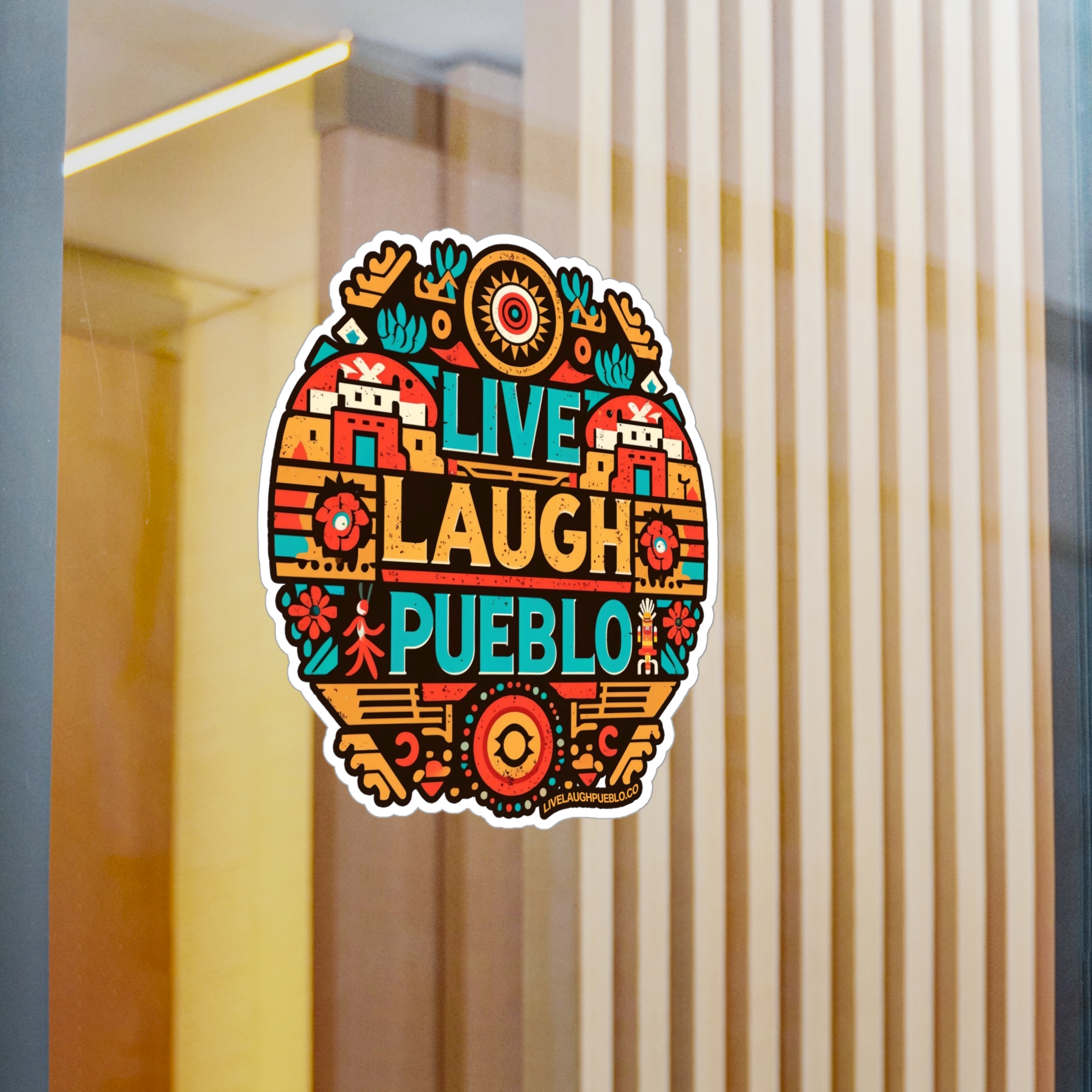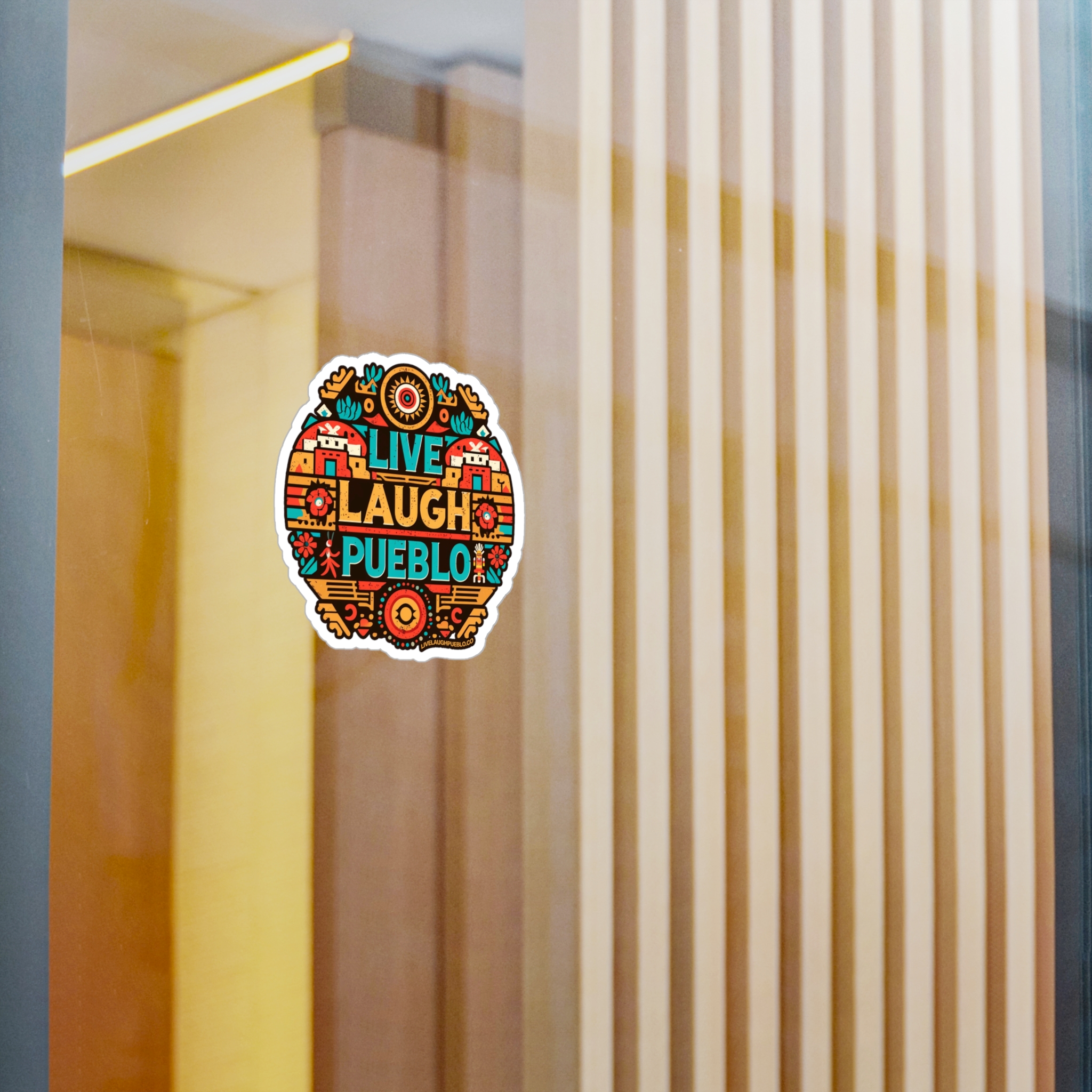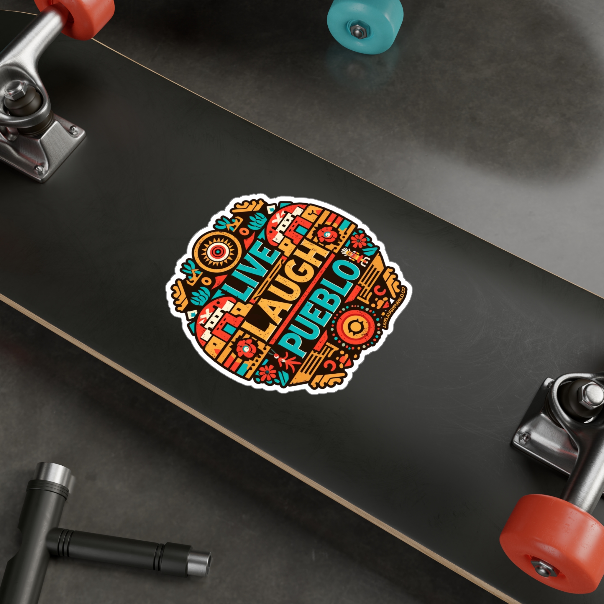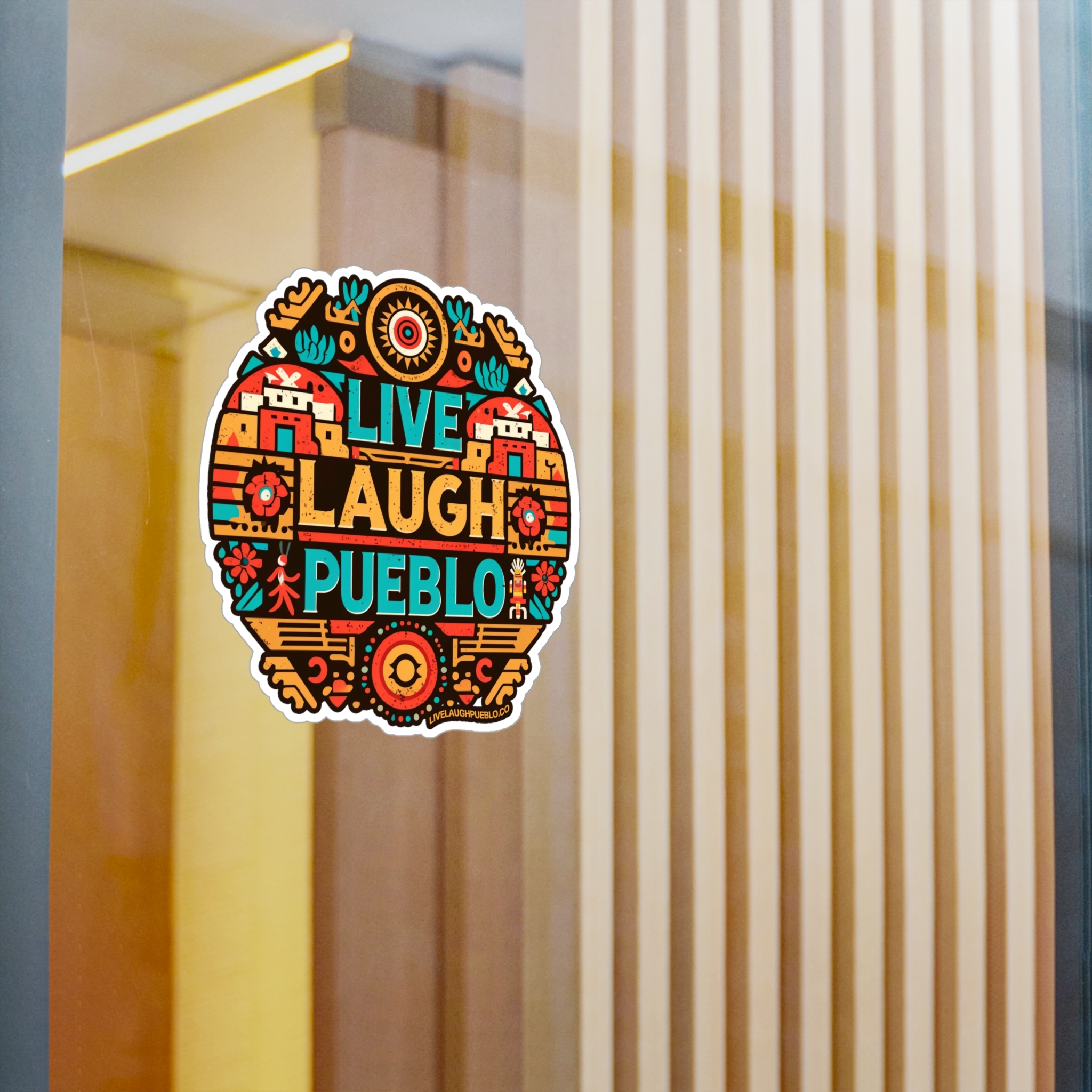 Whether you’re a Southwest enthusiast, a lover of folk art, or simply looking to add a pop of color to your belongings, these ‘Live, Laugh, Pueblo!’ decals are the perfect way to express your style. The intricate design and high-quality materials ensure that your decal will stand out and stand the test of time. Choose your size and bring a piece of Pueblo-inspired art into your daily life today!