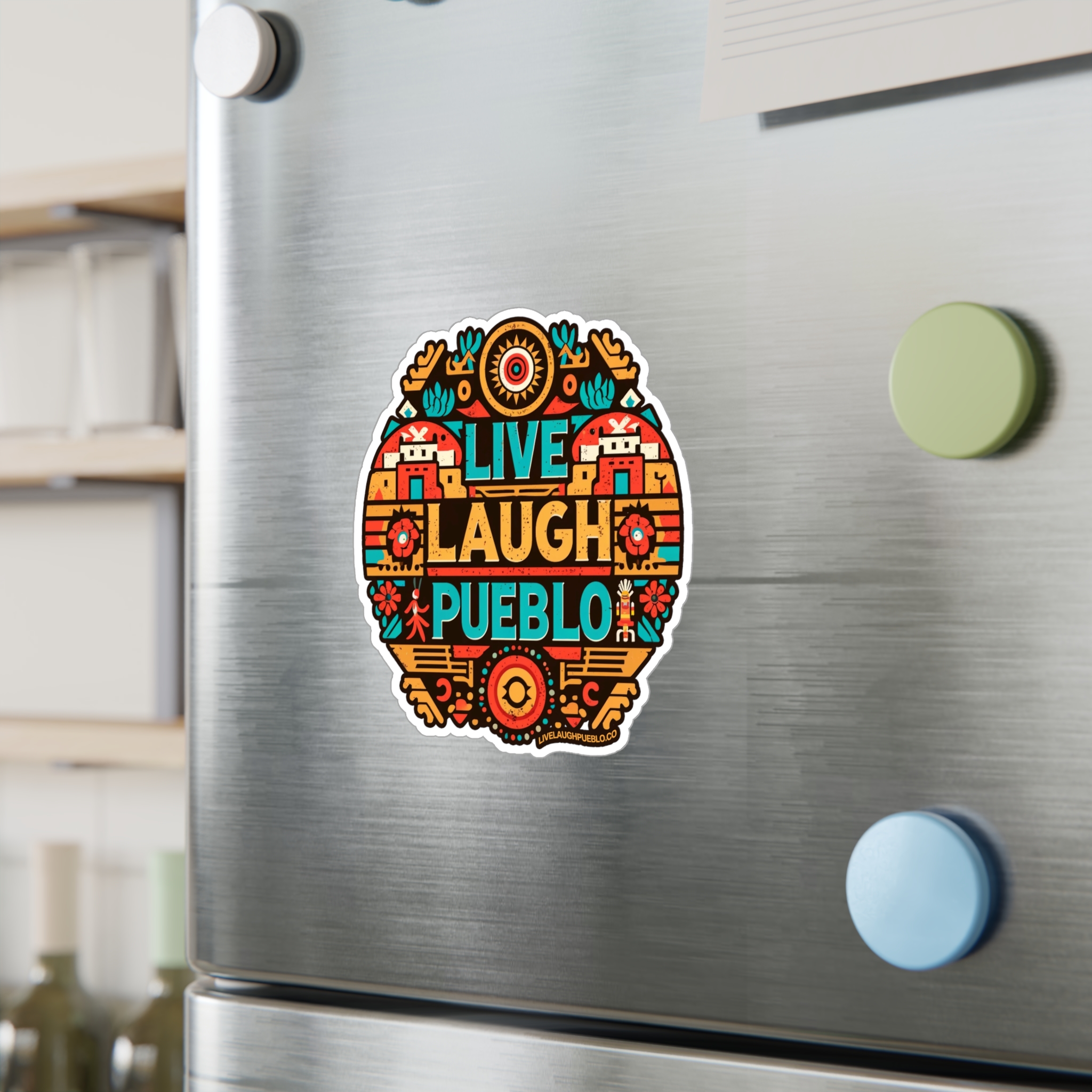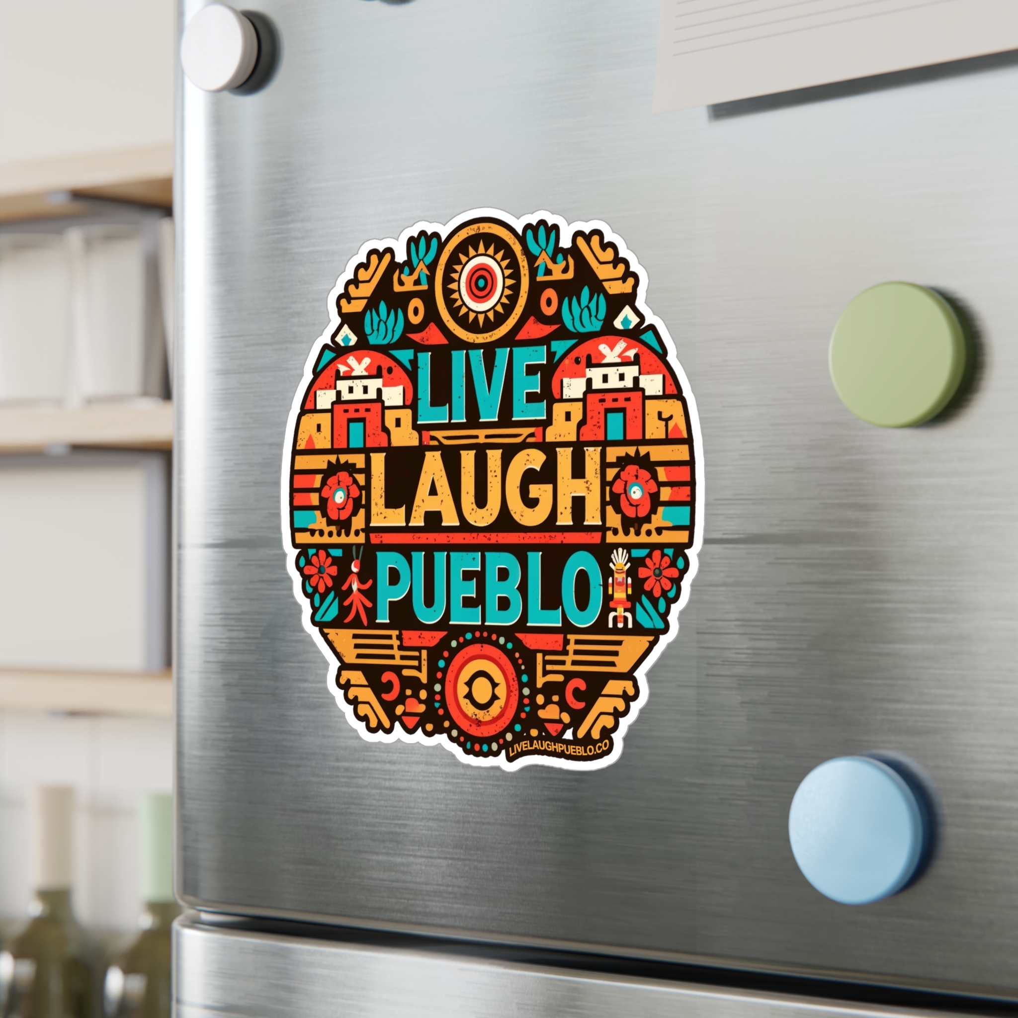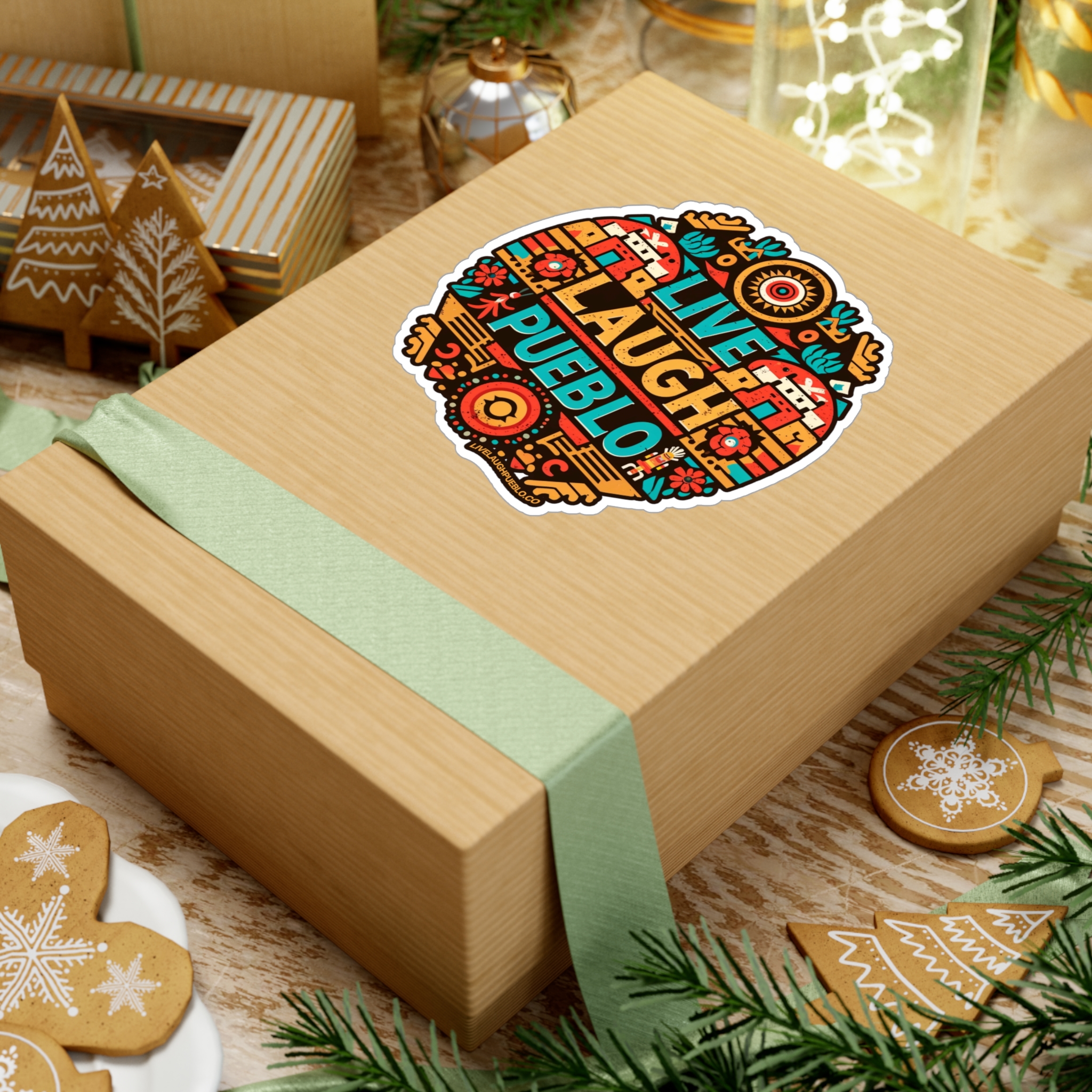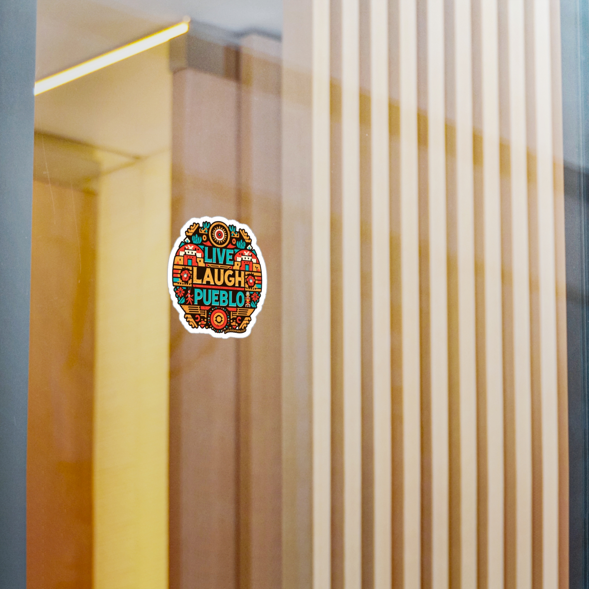 Whether you’re a Southwest enthusiast, a lover of folk art, or simply looking to add a pop of color to your belongings, these ‘Live, Laugh, Pueblo!’ decals are the perfect way to express your style. The intricate design and high-quality materials ensure that your decal will stand out and stand the test of time. Choose your size and bring a piece of Pueblo-inspired art into your daily life today!