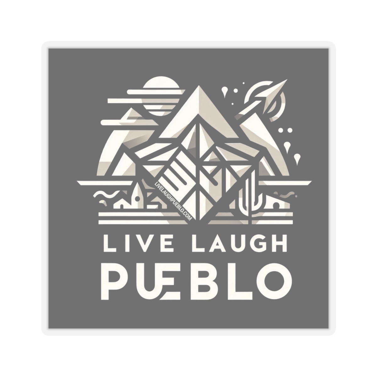 Experience the beauty of Pueblo and the Southwest, with our “Live, Laugh, Pueblo! Geometric Astro Mountain Kiss-Cut Sticker.” This stunning sticker features a modern, geometric design of Pueblo’s iconic mountain backdrop, blending natural elements with contemporary art. The minimalist color palette and intricate details make it a perfect accessory for laptops, water bottles, notebooks, and more. Crafted from high-quality vinyl, this kiss-cut sticker is durable, weather-resistant, and easy to apply. Show your love for Pueblo and its breathtaking scenery with this unique and versatile sticker!