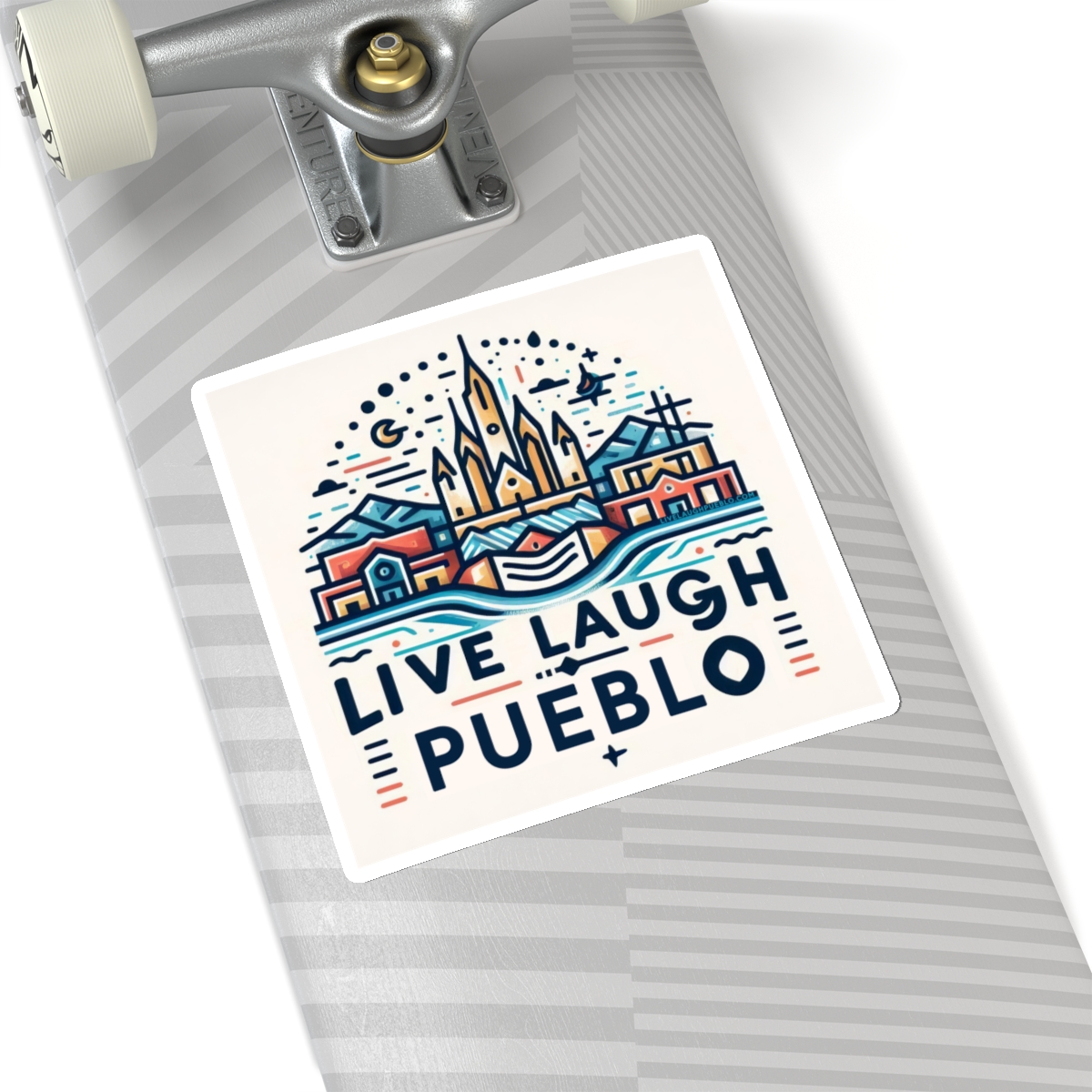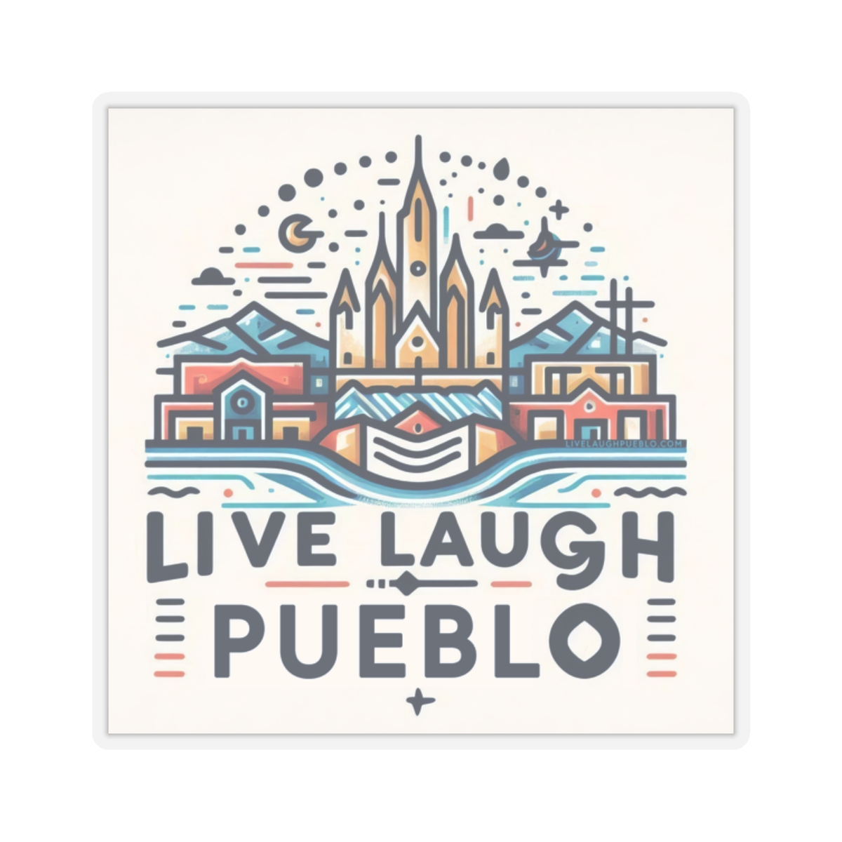 Showcase the charm and vibrant spirit of Southern Colorado, with our “Live, Laugh, Pueblo! Magical Spanish Peaks Kiss-Cut Sticker.” This beautifully designed sticker features a colorful illustration of a vibrant cathedral surrounded by picturesque mountains and charming city buildings. The lively colors and intricate details make it a perfect addition to laptops, water bottles, notebooks, and more. Made from high-quality vinyl, this kiss-cut sticker is durable and easy to apply. Embrace the beauty of the Spanish Peaks and Sangre de Cristo mountains with this eye-catching and versatile accessory!