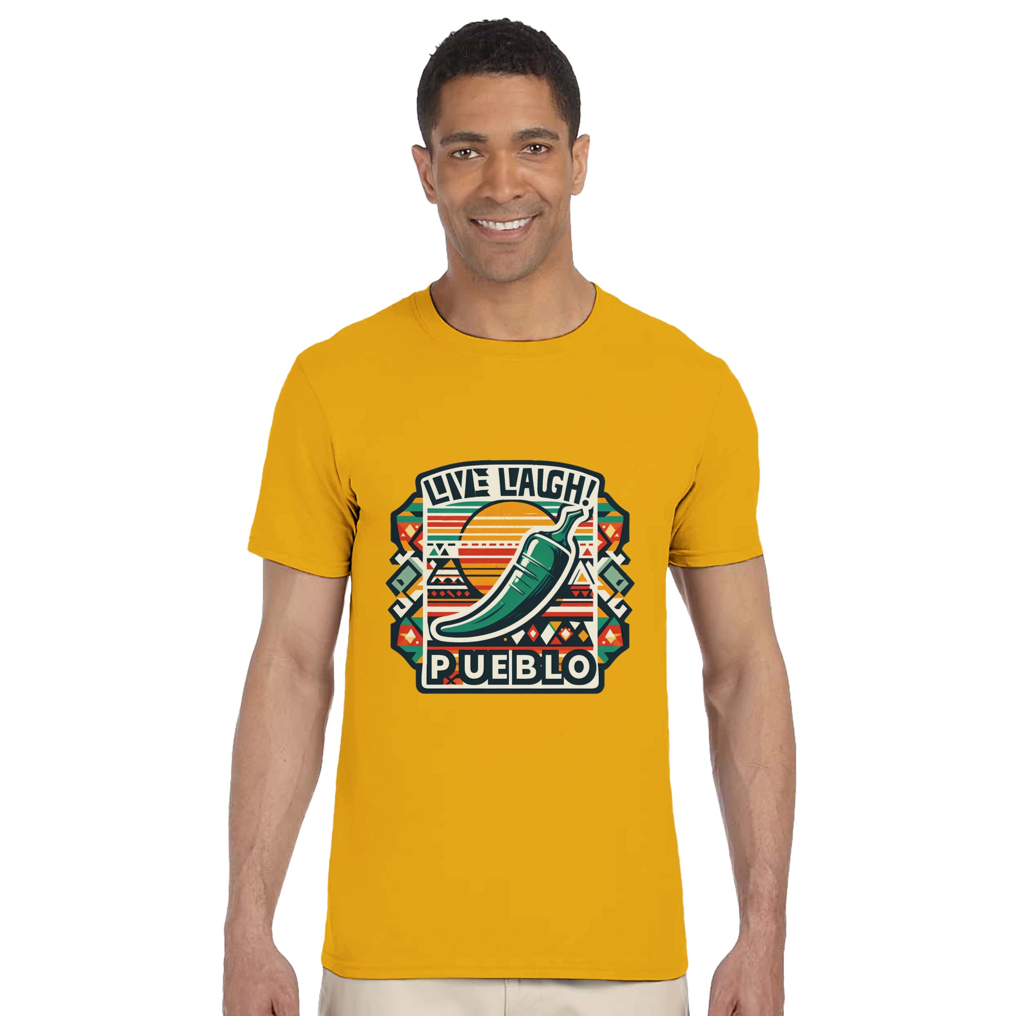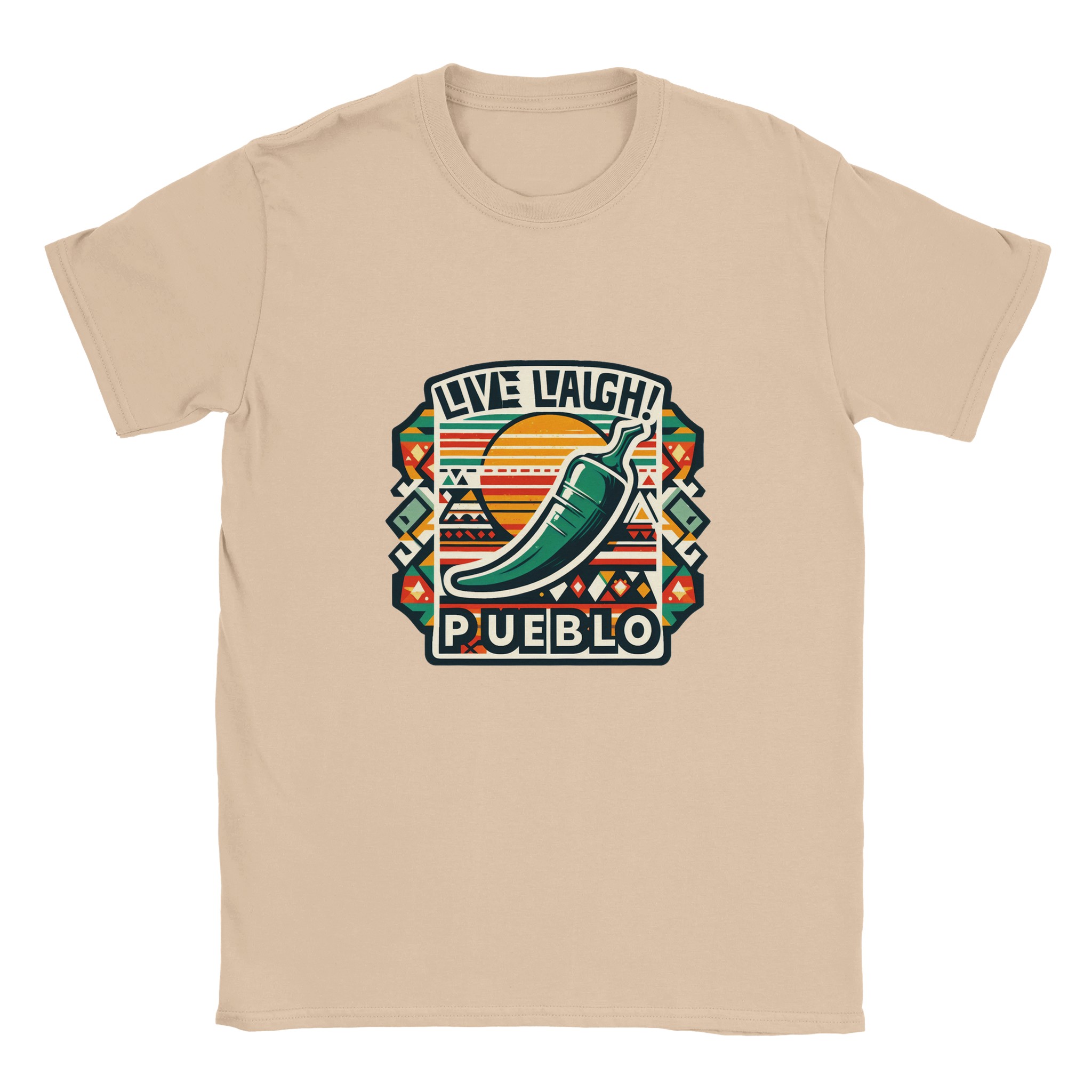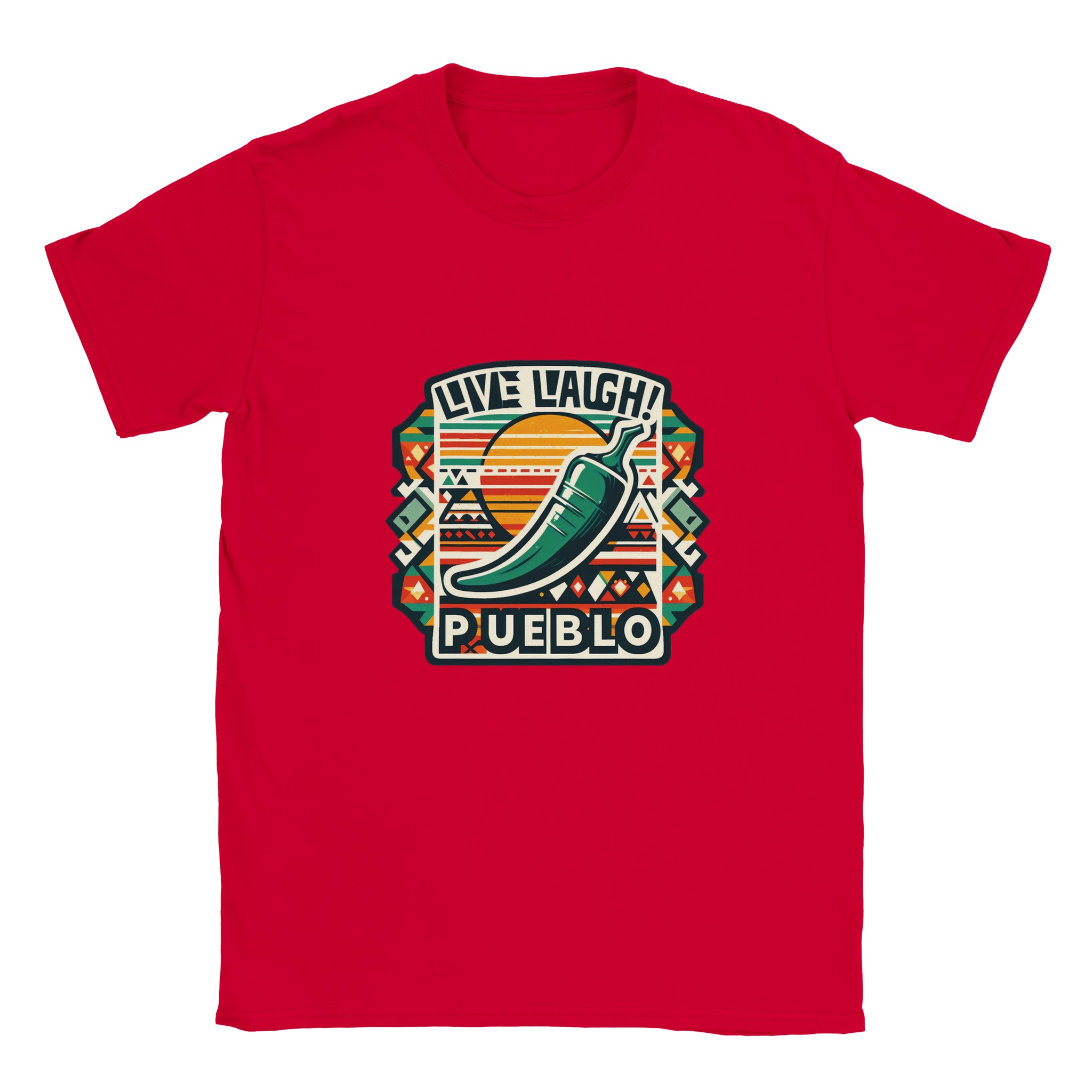 Live Laugh Pueblo Southwest Green Chili Aztec Graphic Unisex Crewneck T-shirt | Gildan® 64000