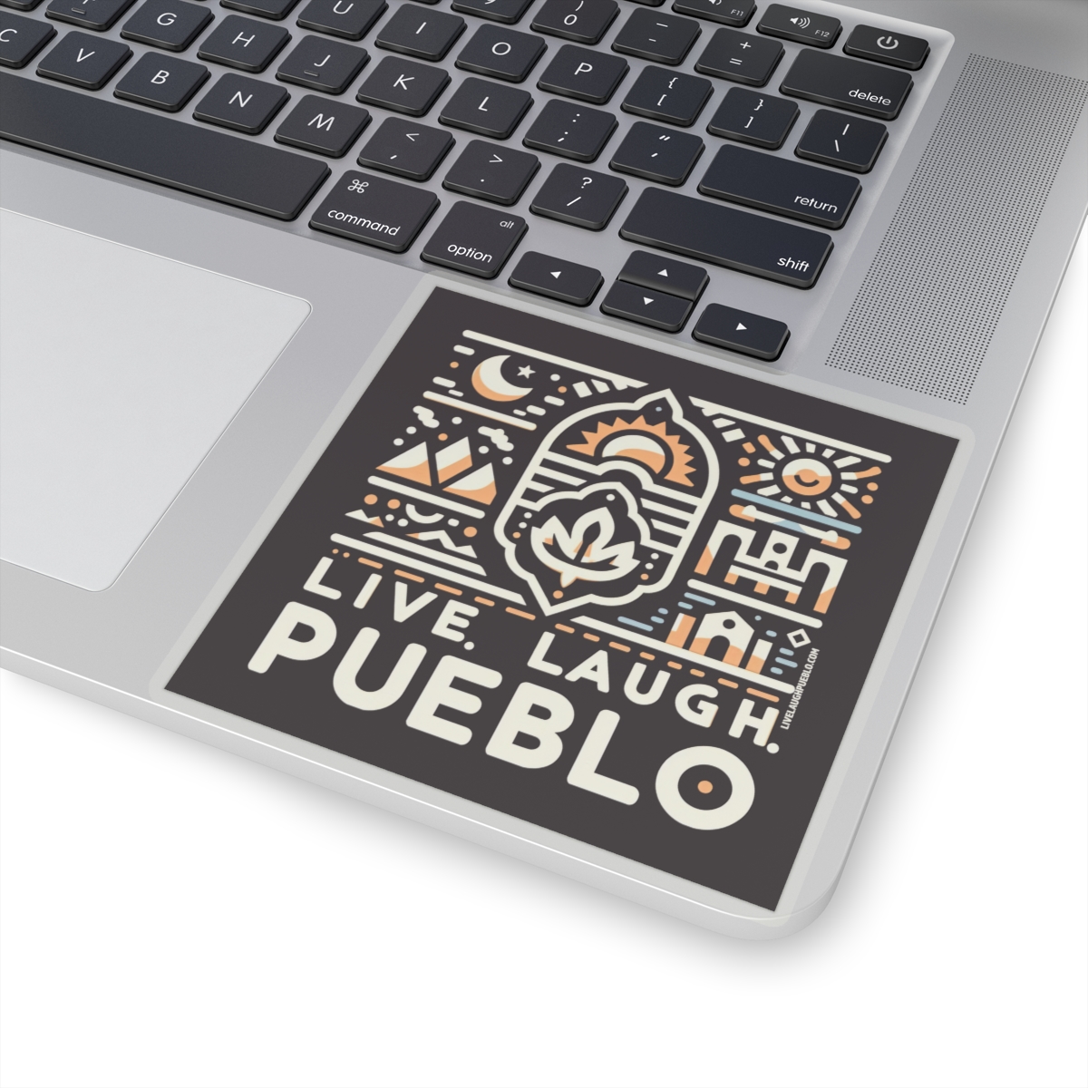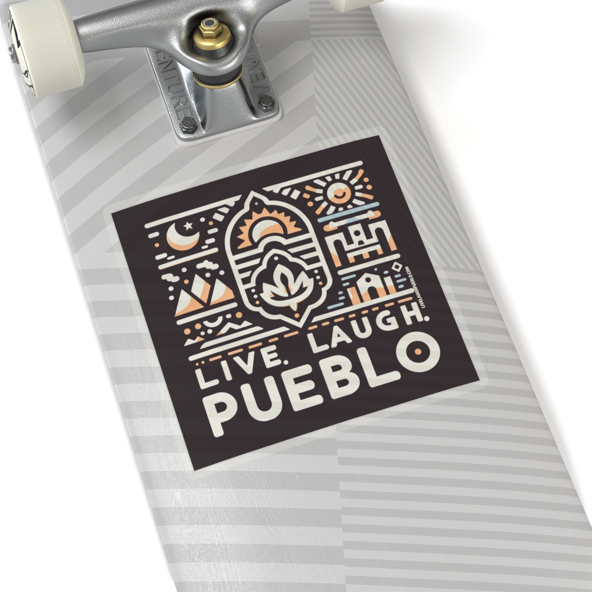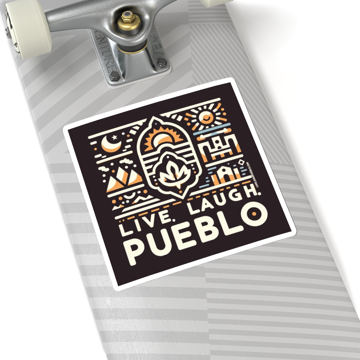 Capture the essence of Pueblo, Colorado, with our “Live, Laugh, Pueblo! Southwestern Sunset Kiss-Cut Sticker.” This stunning sticker features a vibrant design that combines elements of Pueblo’s beautiful landscapes, architectural landmarks, and iconic sunsets. With its warm color palette and intricate details, this sticker is perfect for adding a touch of Southwestern charm to your laptop, water bottle, notebook, and more. Crafted from high-quality vinyl, this kiss-cut sticker is durable, weather-resistant, and easy to apply. Celebrate Pueblo’s unique beauty with this eye-catching and versatile accessory!