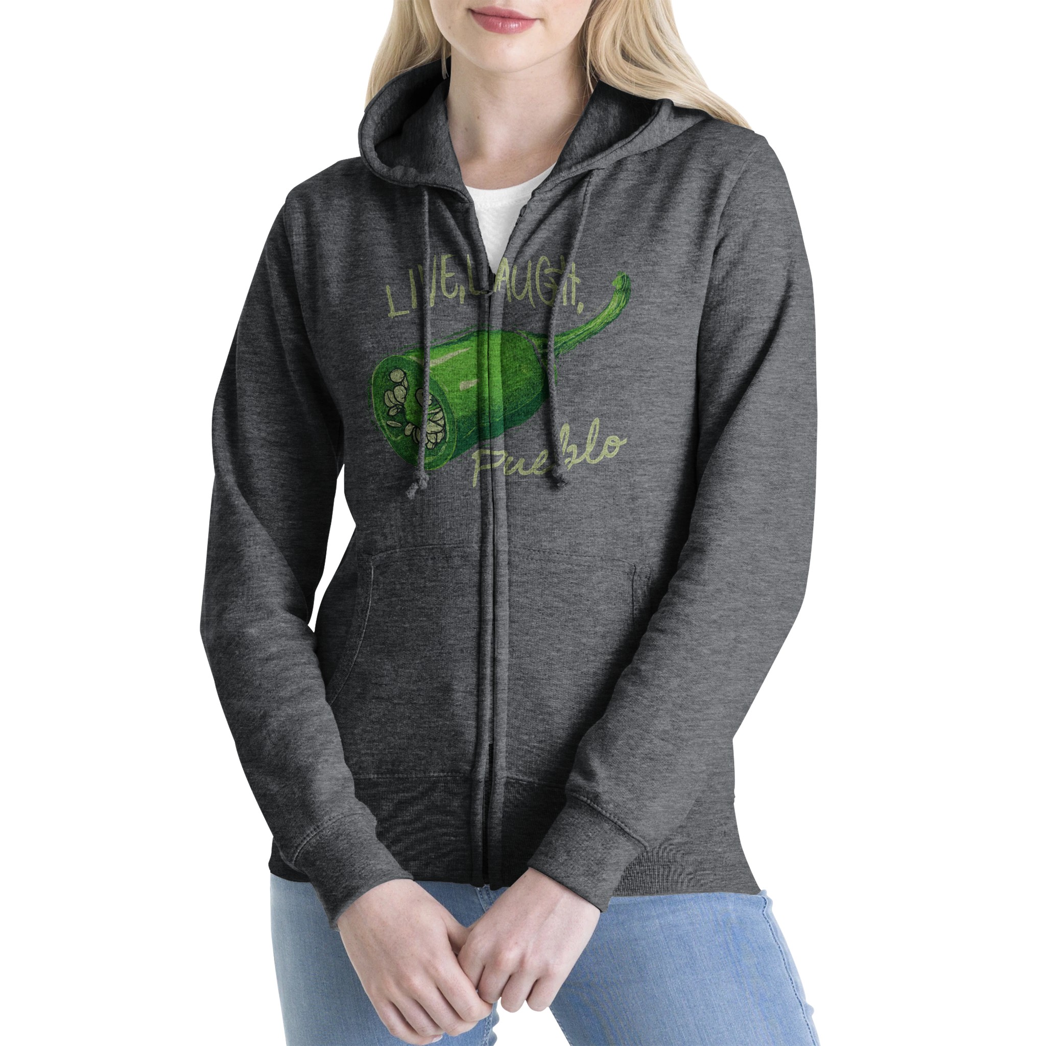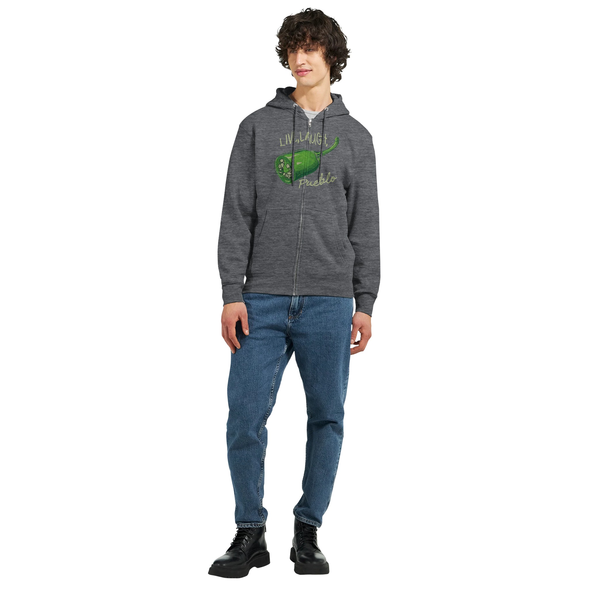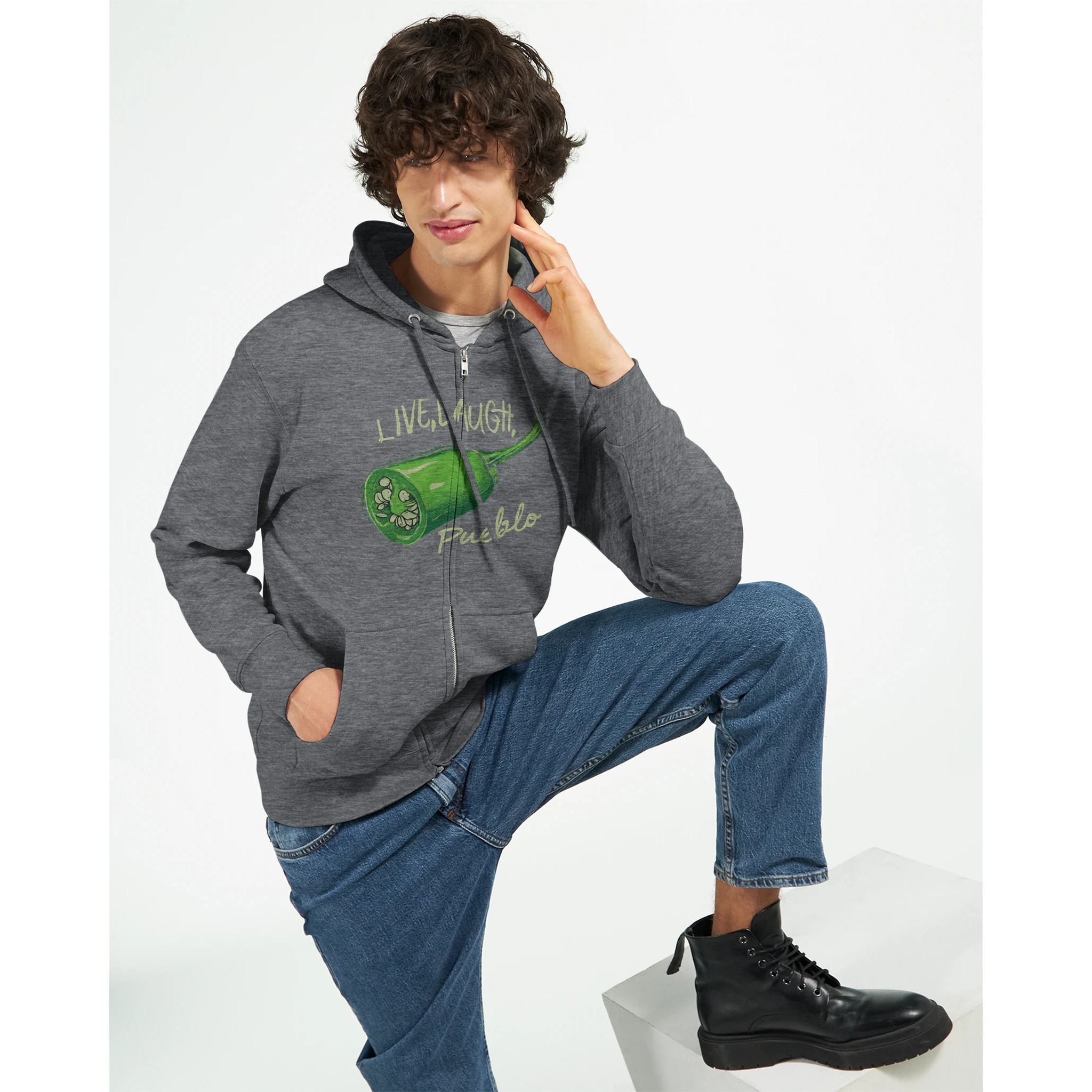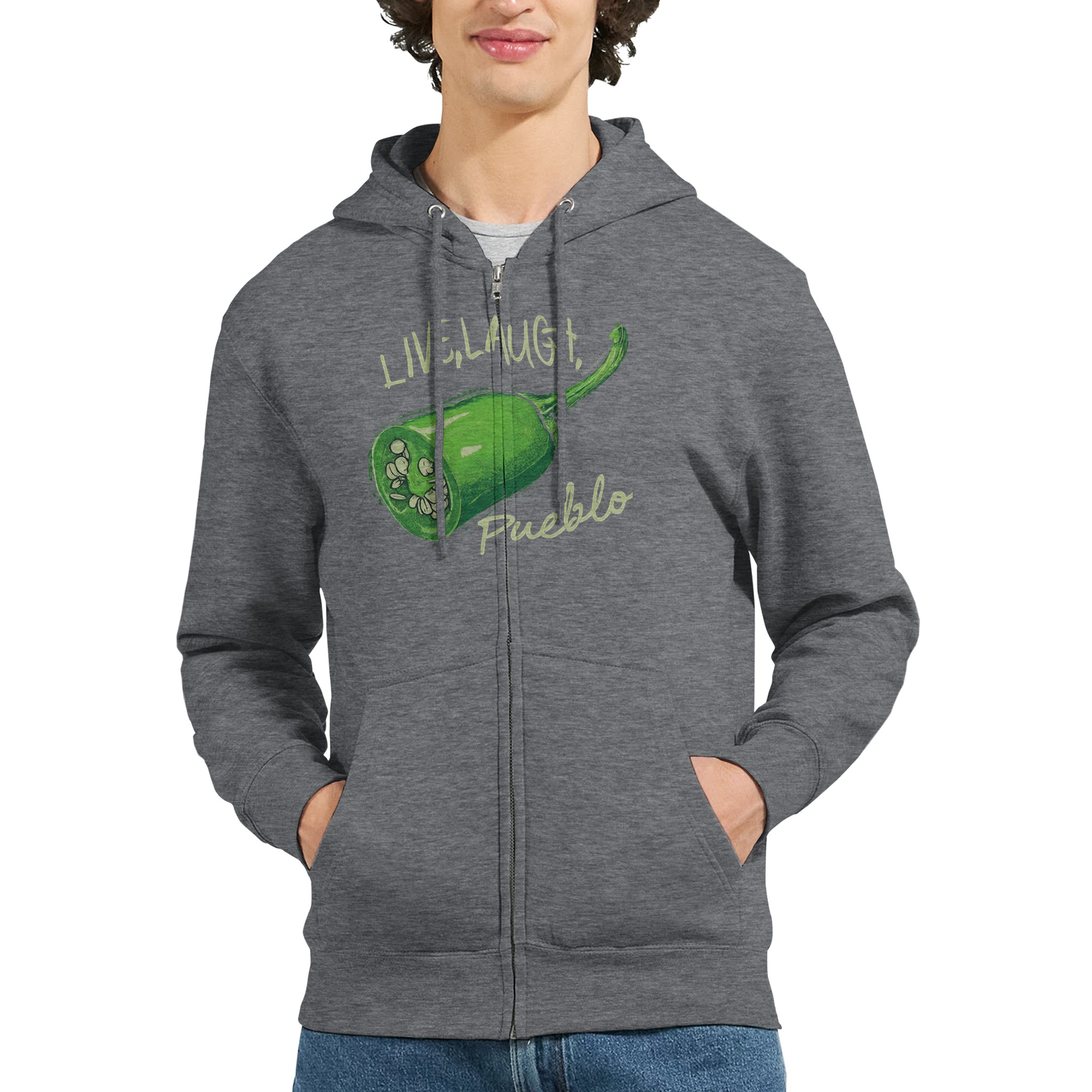 Show off your love for Pueblo’s famous green chiles and add a spicy dash of humor to your wardrobe with this unique and comfortable zip hoodie. It’s not just a piece of clothing – it’s a statement that says you know how to live, laugh, and appreciate the heat of life!