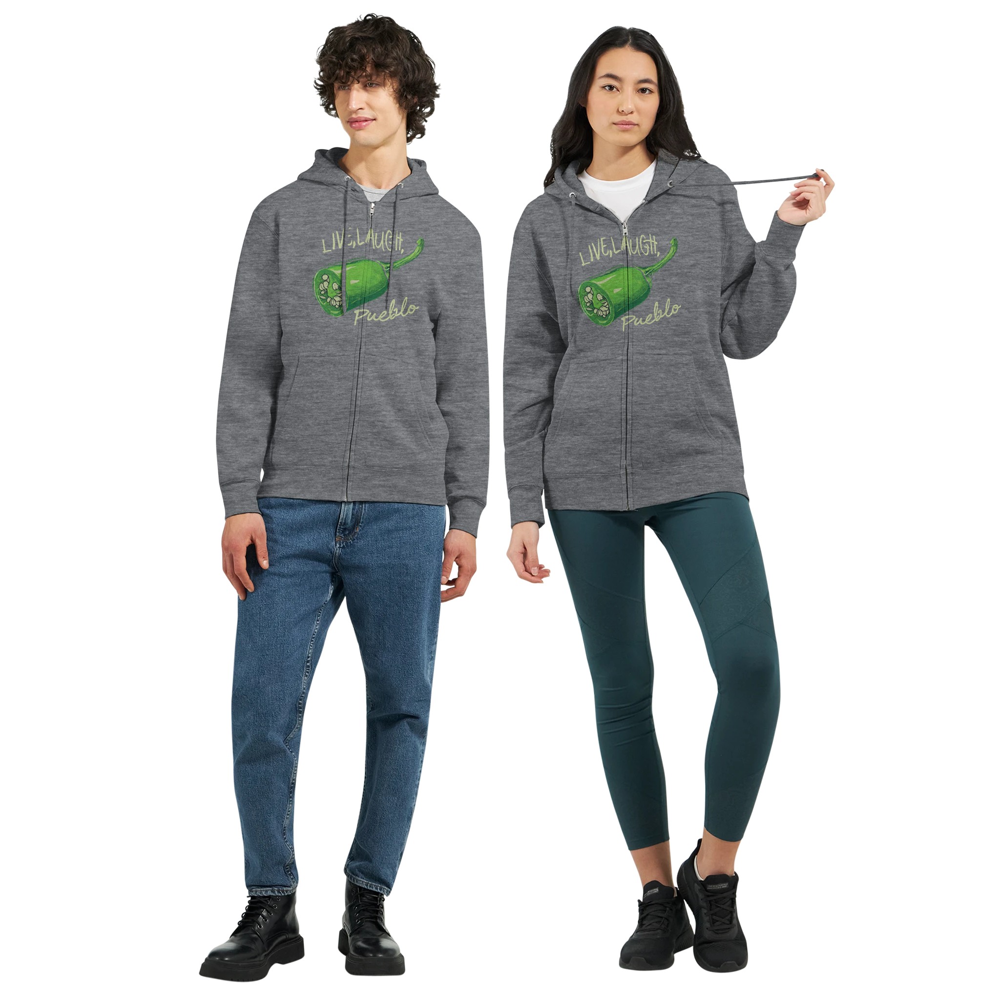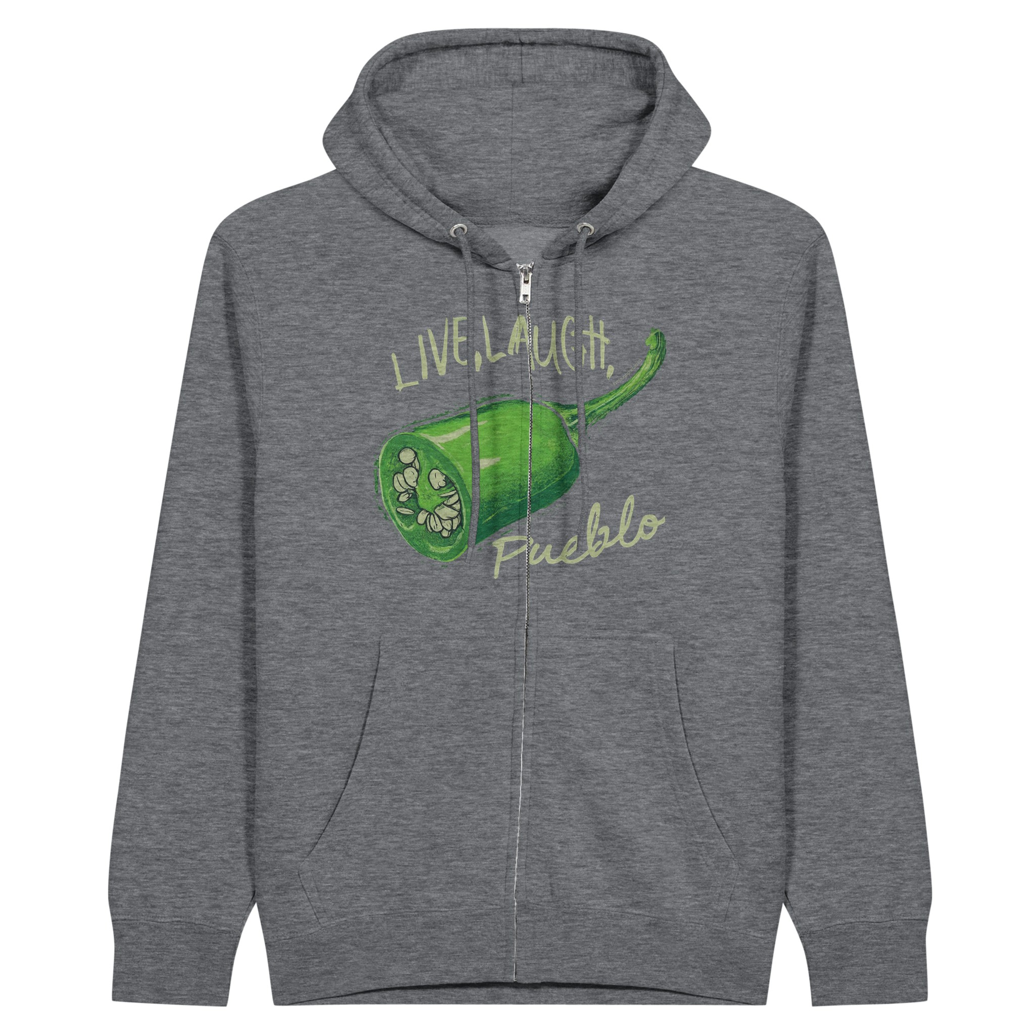 Live, Laugh, Pueblo: Spicy Green Chile Premium Unisex Zip Hoodies