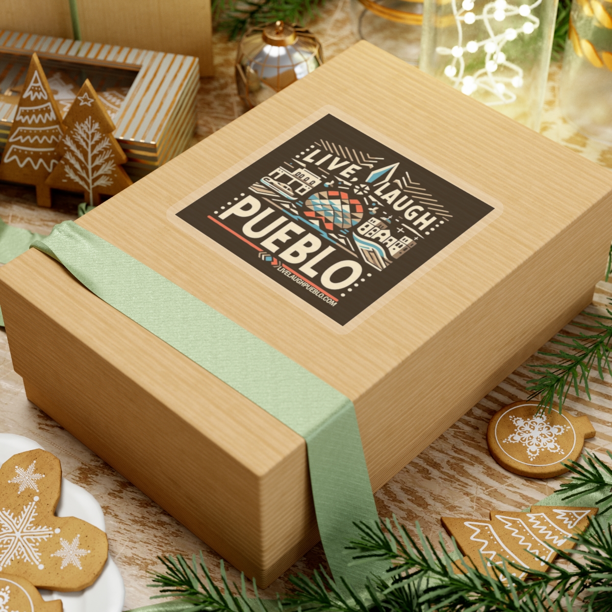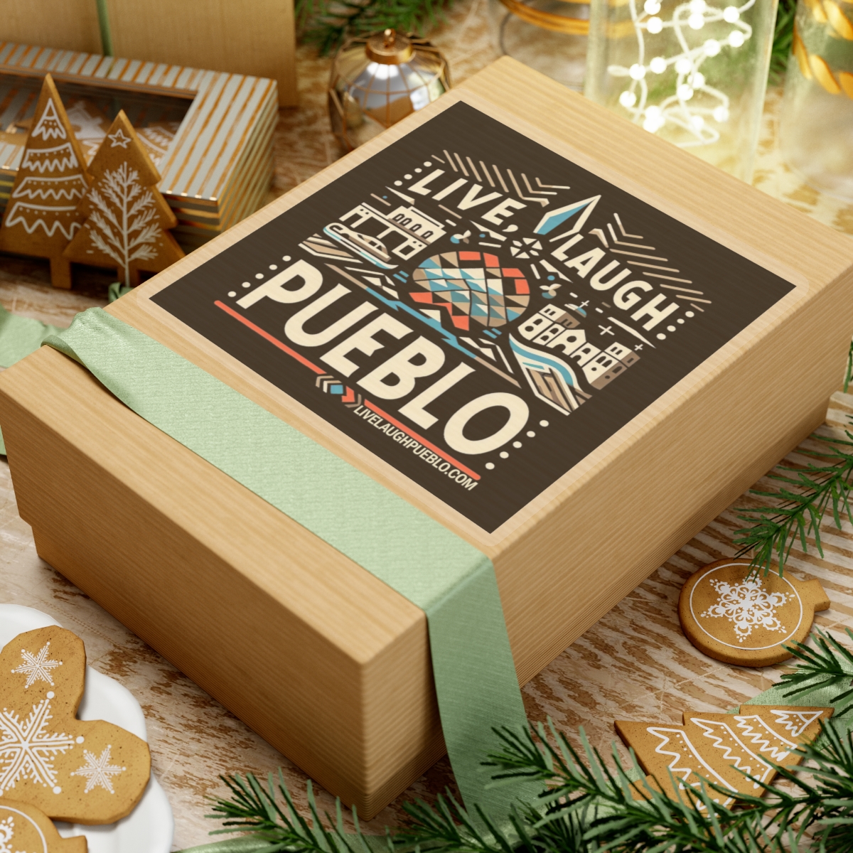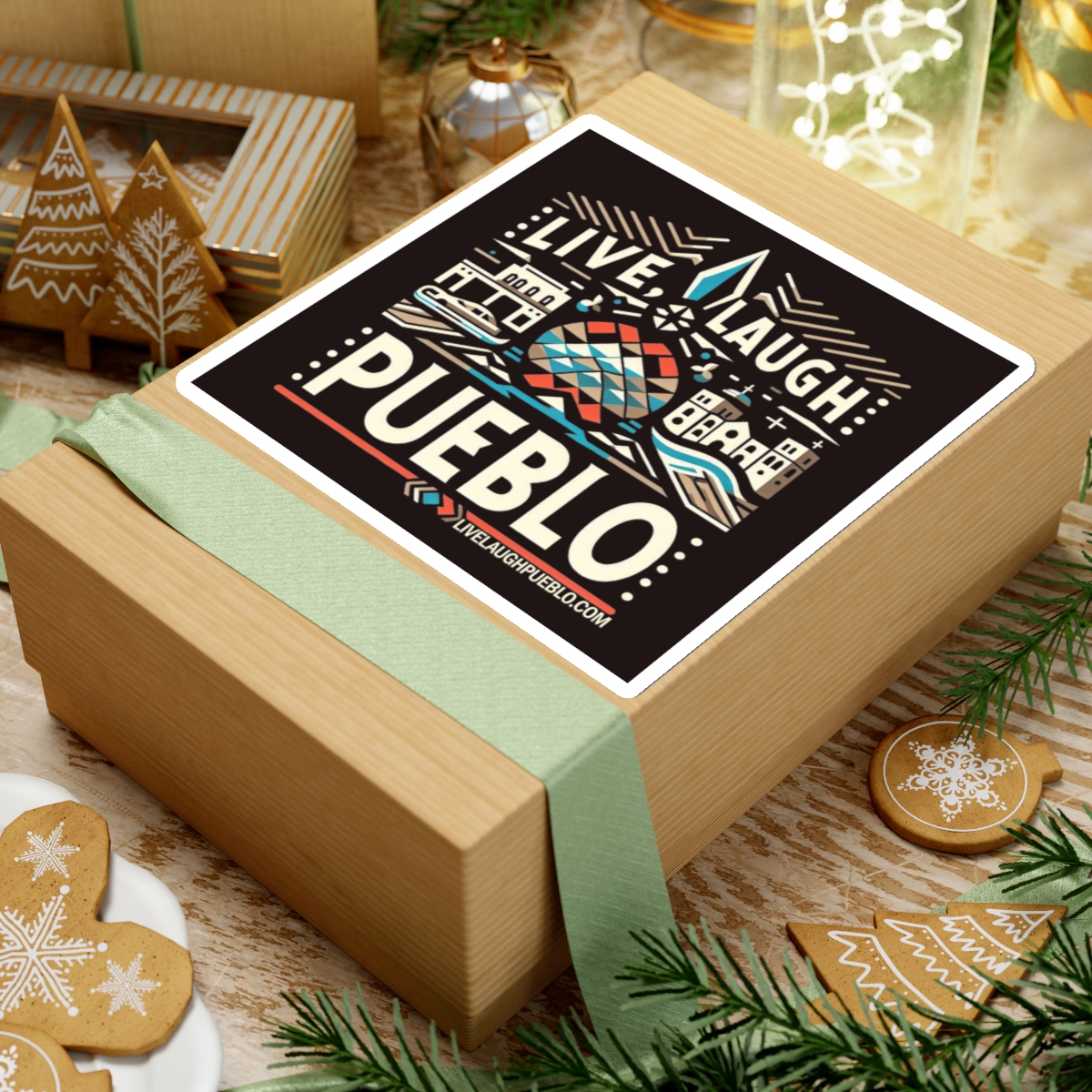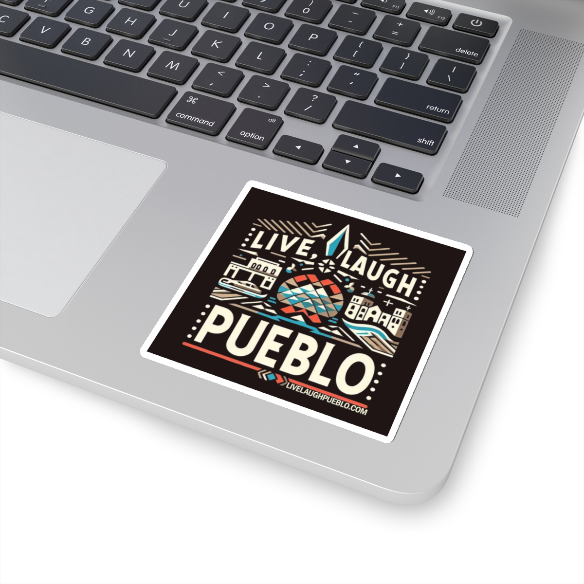 Celebrate the vibrant culture and unique charm of Pueblo, Colorado with our Live, Laugh, Pueblo! Vibrant Pueblo Cityscape Kiss-Cut Sticker. This eye-catching design features a lively cityscape, blending modern and traditional elements that highlight a “Pueblo of Tomorrow.” With bright colors and intricate details, this sticker is perfect for personalizing your laptop, water bottle, notebook, or any other surface. Made from high-quality vinyl, our kiss-cut stickers are durable, weather-resistant, and easy to apply. Show some Pueblo love with this stunning and versatile accessory!