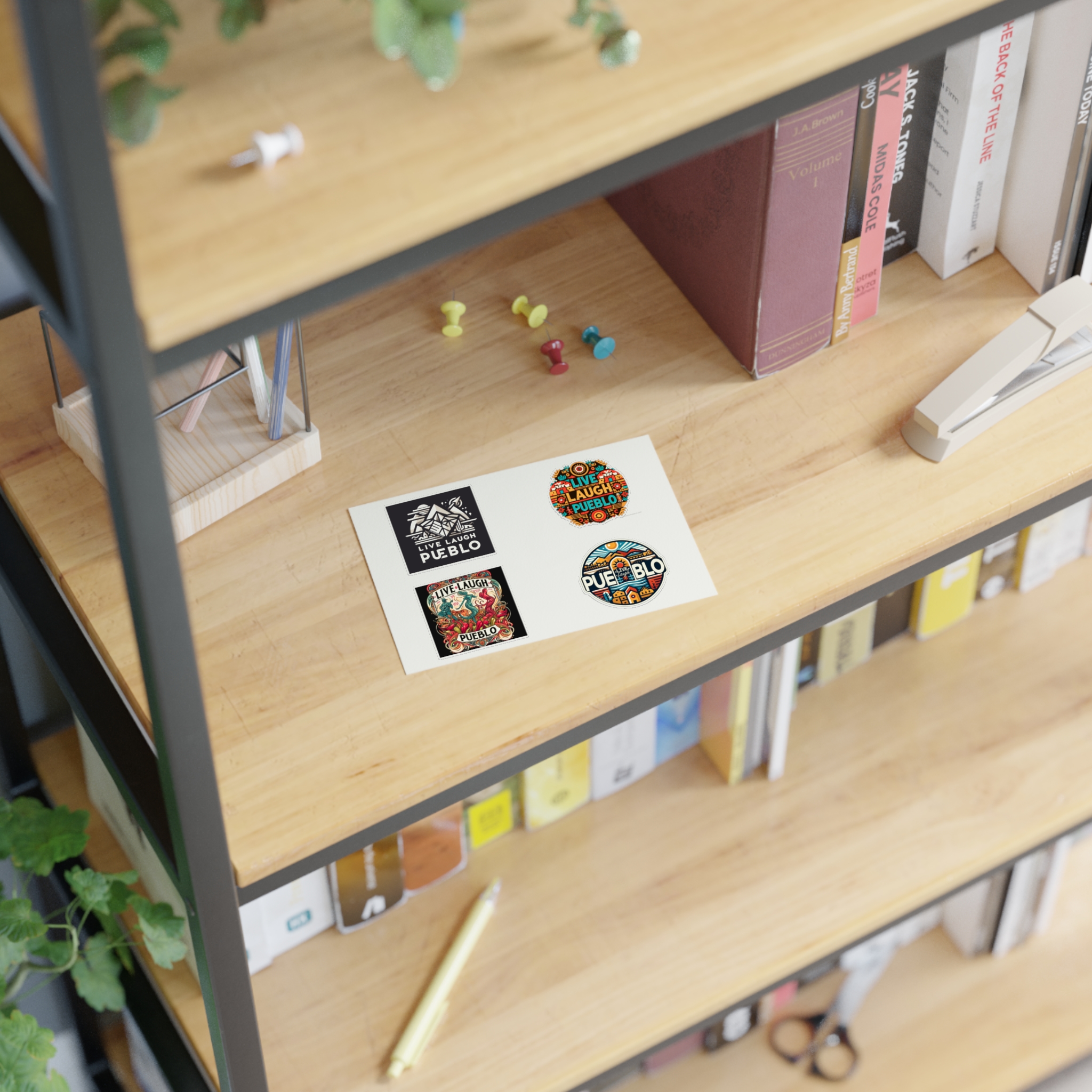 • Quantity: One sheet per order with multiple ‘Live, Laugh, Pueblo!’ stickers